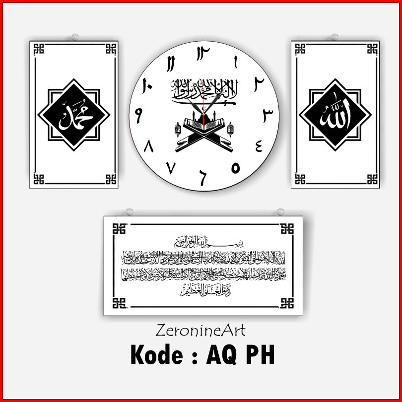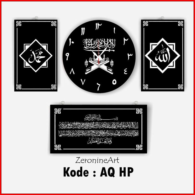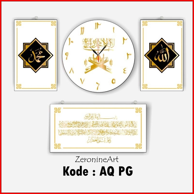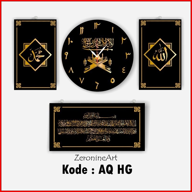 Jam Dinding Kaligrafi Arab Islami Unik 1set Jam Dinding Tauhid Allah Muhammad Ayat Kursi