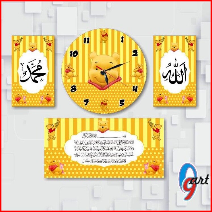 Jam Dinding Kaligrafi 1set Karakter Winnie The Pooh Ayat Kursi Allah Muhammad