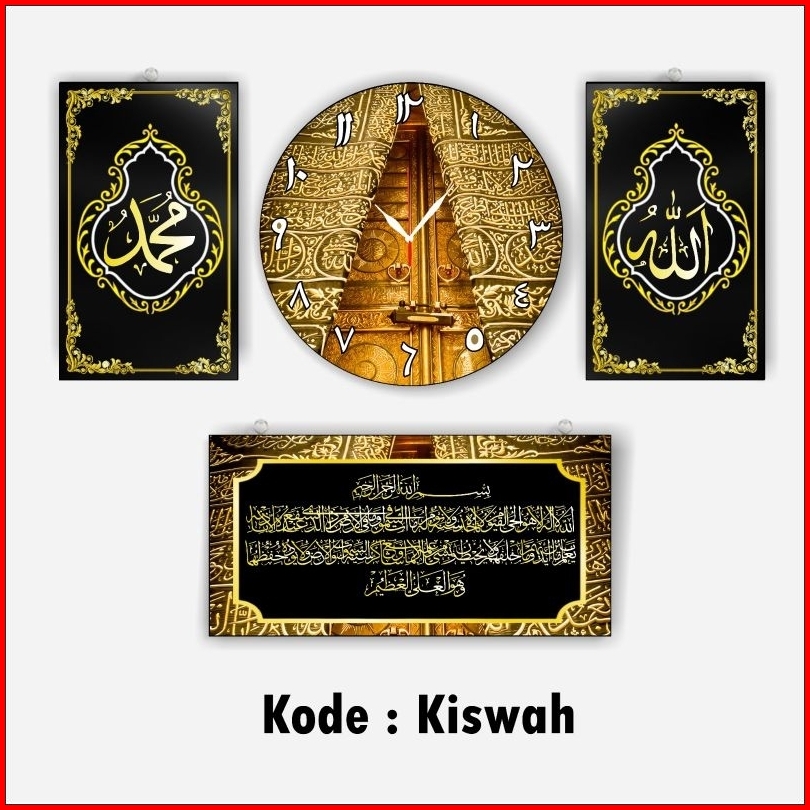 Jam Dinding Kaligrafi Aesthetic Kiswah Jam Dinding Islami Unik 1 Set Allah Muhammad Ayat Kursi
