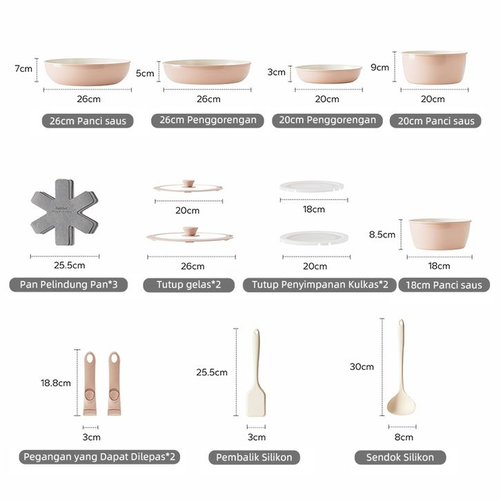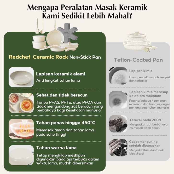 REDCHEF PANCI SET PERALATAN MASAK KERAMIK ANTI LENGKET PEGANGAN DAPAT DILEPAS 16 PCS TANPA PFAS PTFE PFOA