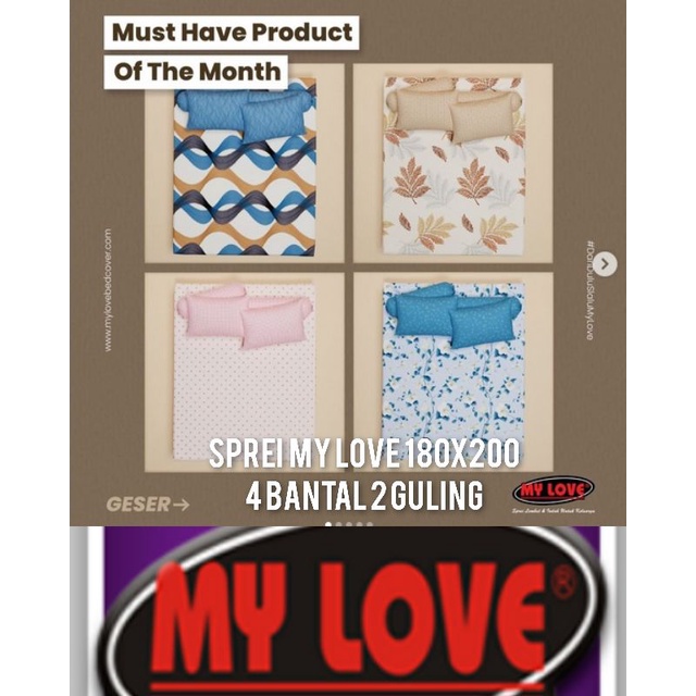 SPREI BANTAL 4 GULING 2 180X200 MY LOVE | KING - NYERAP KERINGAT | AIR BAHAN KATUN TEBAL COCOK BUAT HAMPER