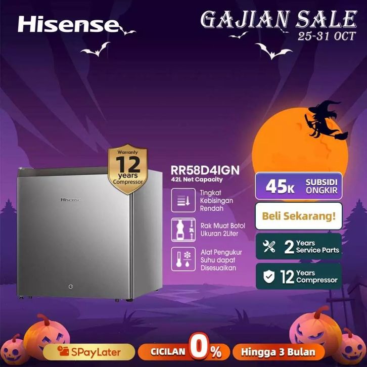 Hisense Kulkas Mini Bar (Refrigerator) Lemari Es Portable Kapasitas 42L RR58D4IGN - Silver