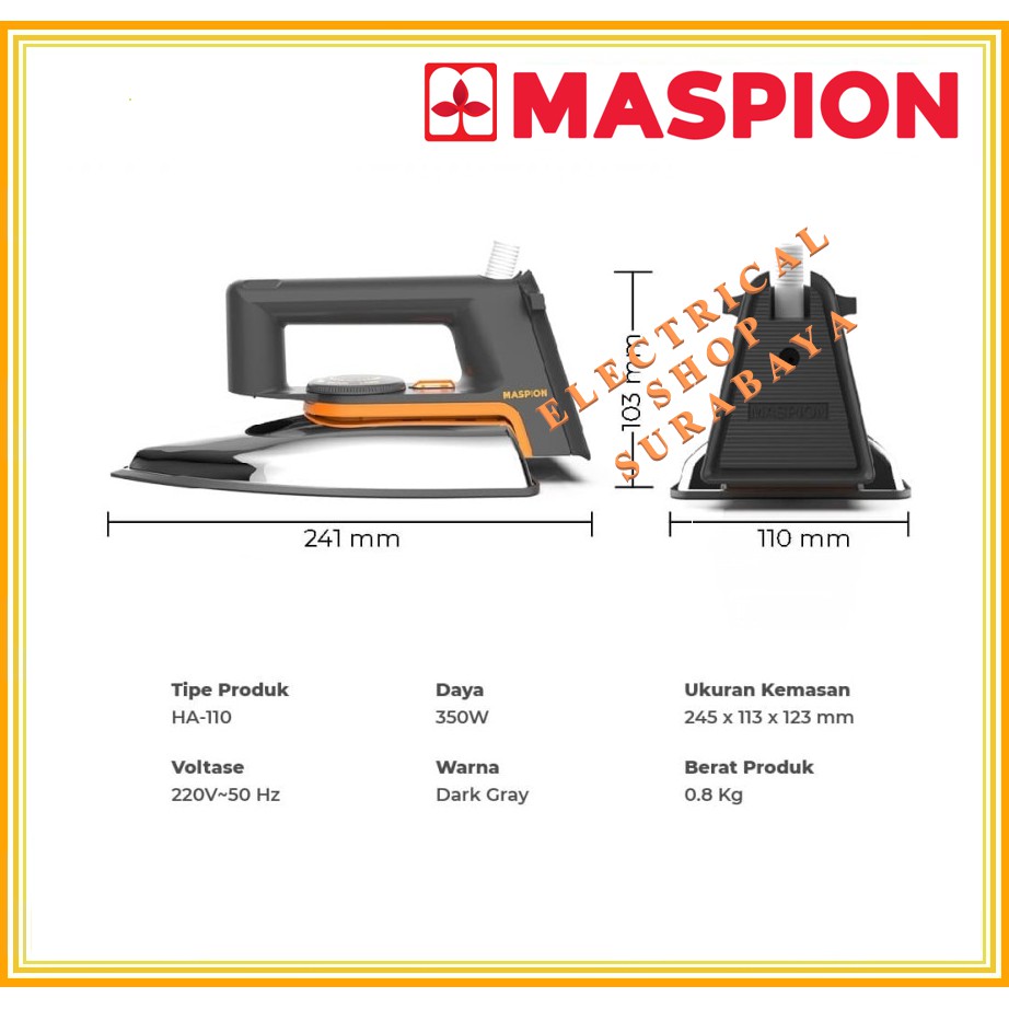 MASPION SETRIKA HA-110 350W GOSOKAN BAJU LISTRIK ANTI LENGKET IRON HA 110 HA110 350WATT 350 W WATT ORIGINAL