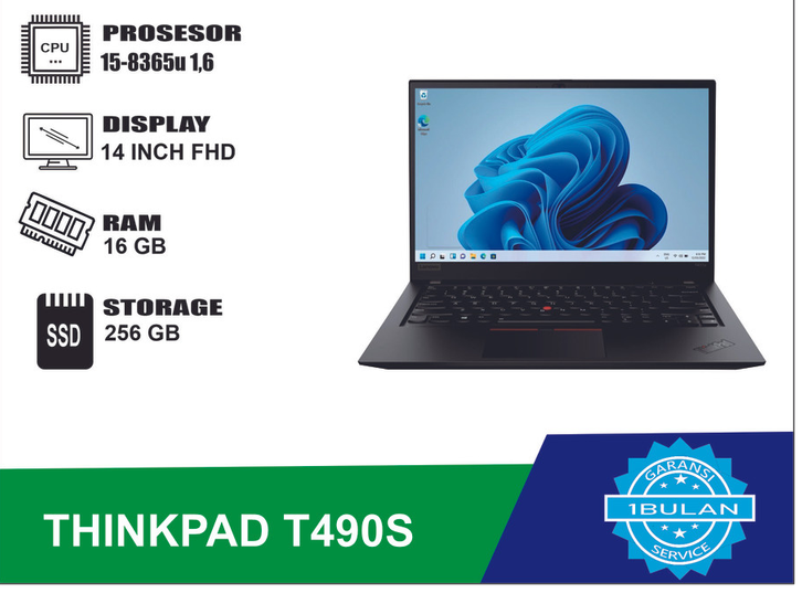 Lenovo Thinkpad T490s Core i5 Gen8 Ram 16gb SSD 256 FHD Touch - 16gb 128gb free mouse