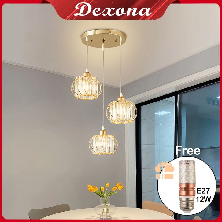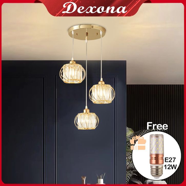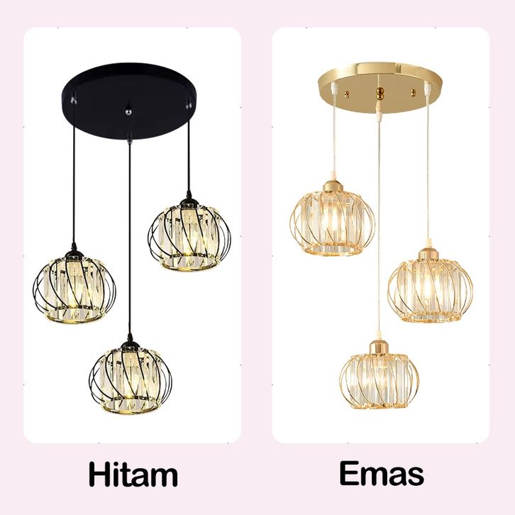 GARANSI&TERMURAH LAMPU GANTUNG KRISTAL MINIMALIS MODERN RUA-NG MAKAN 3 IN 1 BULAT 6002/3 LAMPU HIAS GANTUNG RUMAH