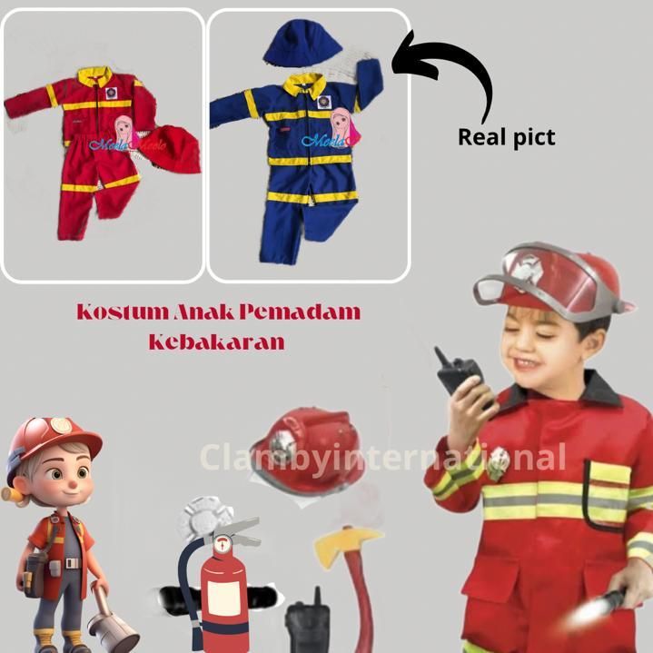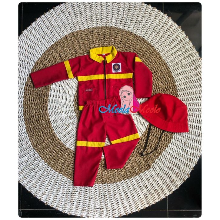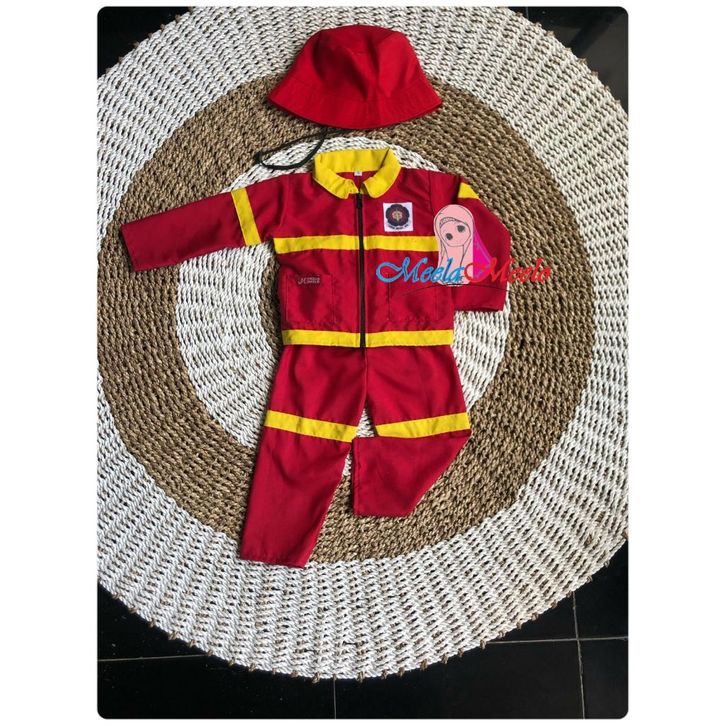 Setelan Kostum Anak Profesi Damkar Pemadam Free Topi Polisi Tni Kostum Carnaval Agustusan Pemadam Damkar TK PAUD SD