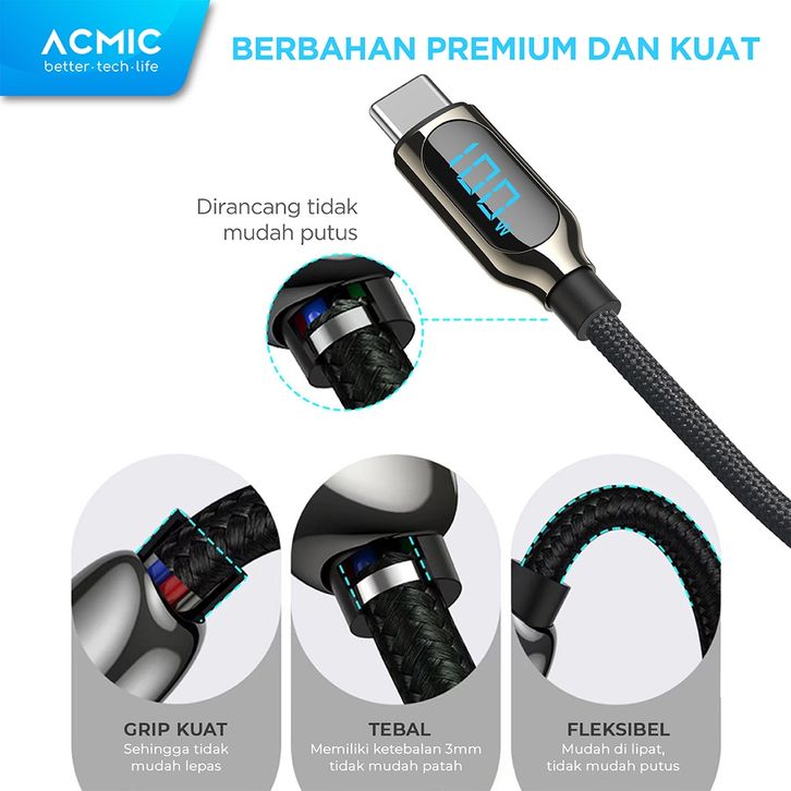 ACMIC DIGILINE Kabel USB-C to USB-C 100W PD Fast Charging LED DISPLAY