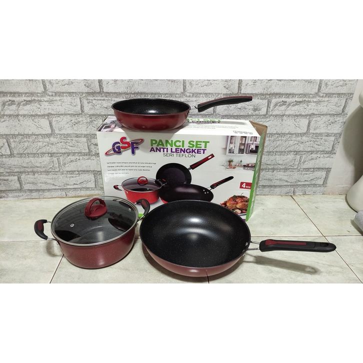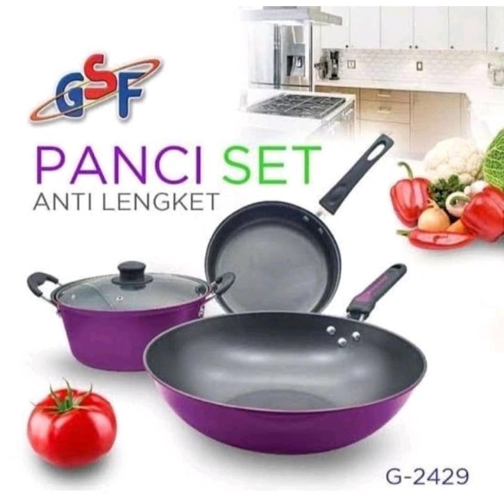 Panci GSF Set G-2429 Wajan Penggorengan Teflon Anti Lengket Cookware
