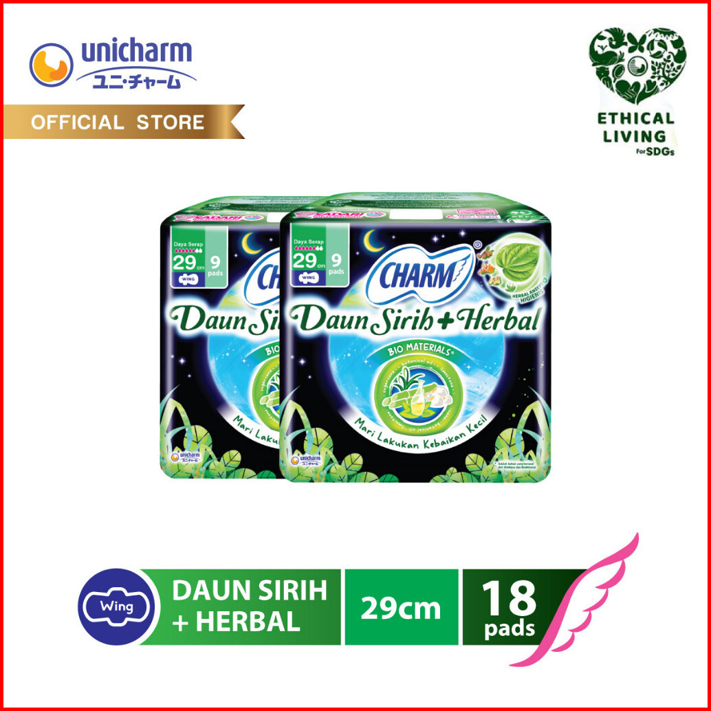 Charm Pembalut Daun Sirih Herbal Bio Material Night 29cm 9p- 2 Packs