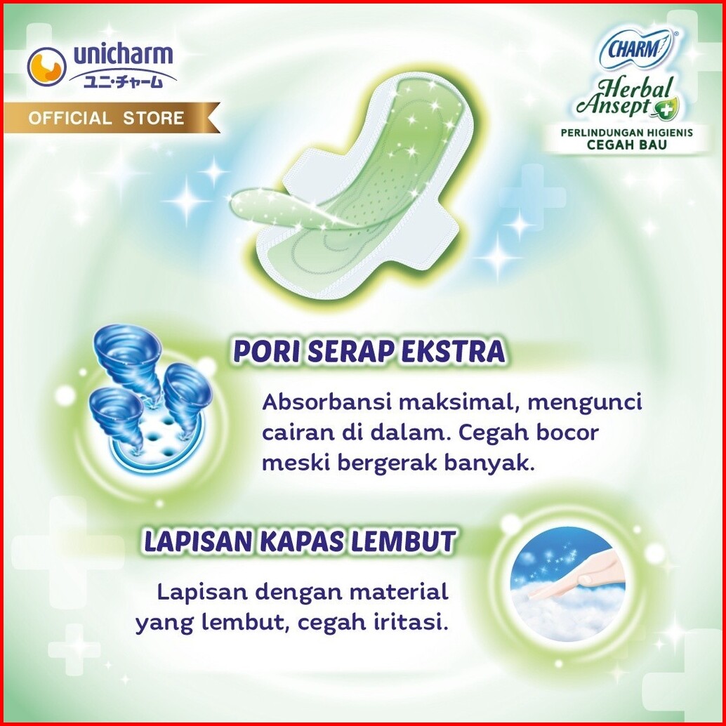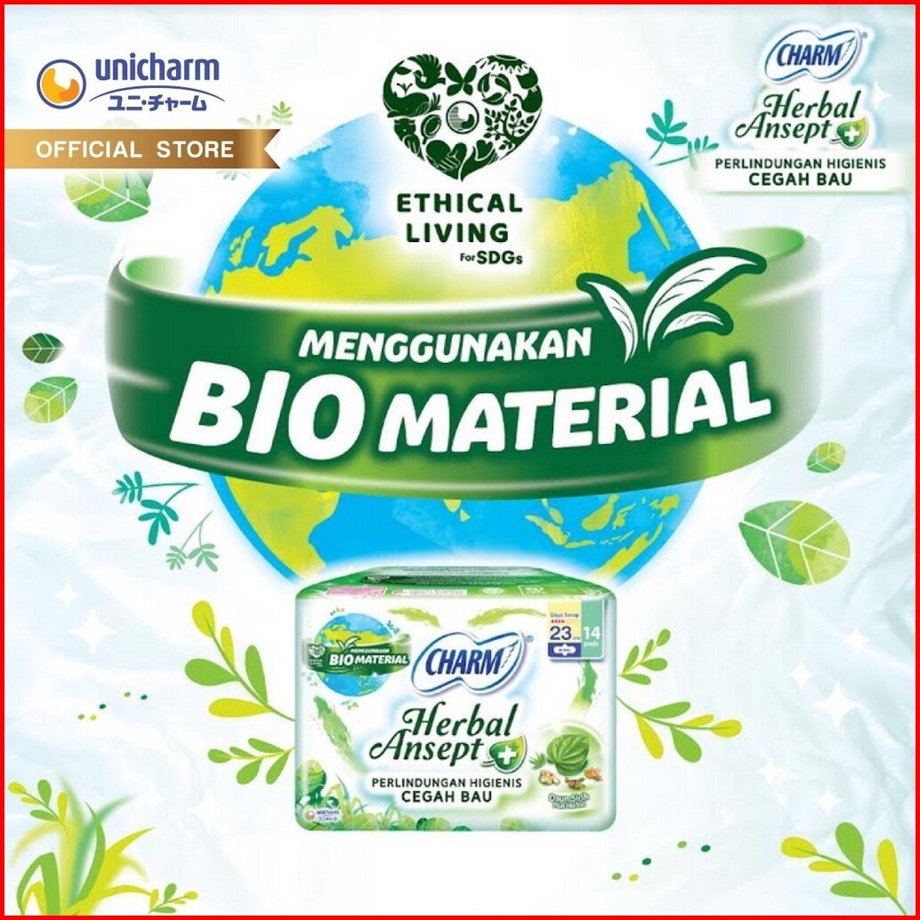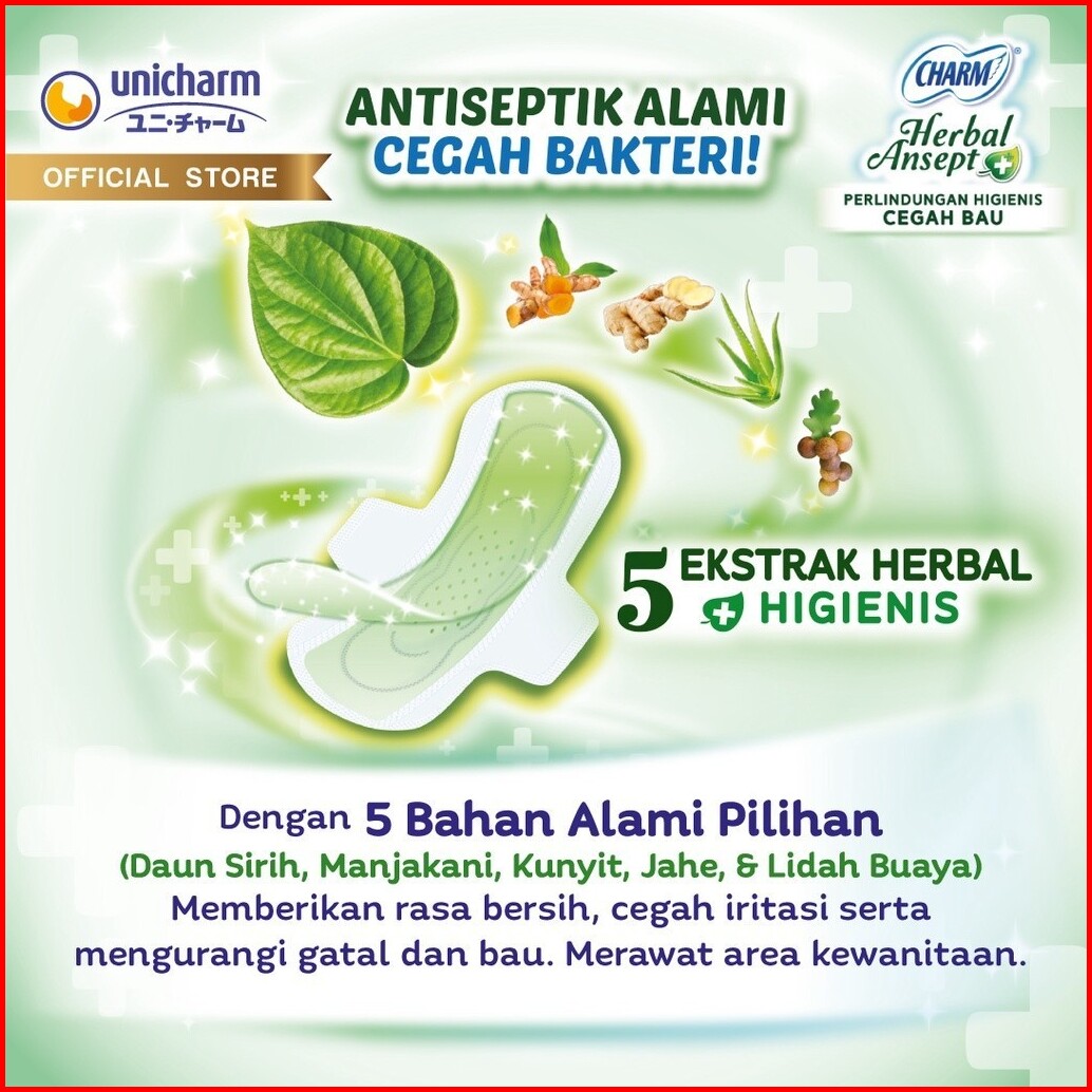 Bio Material Charm Pembalut Daun Sirih Herbal 23cm Wing 14 Pads - 3 Packs