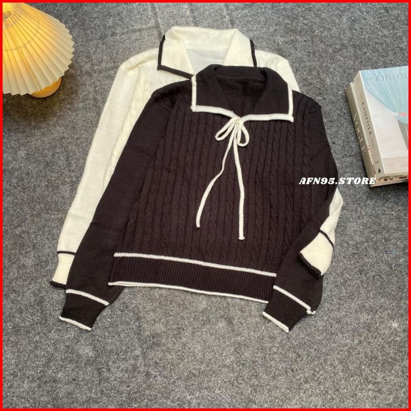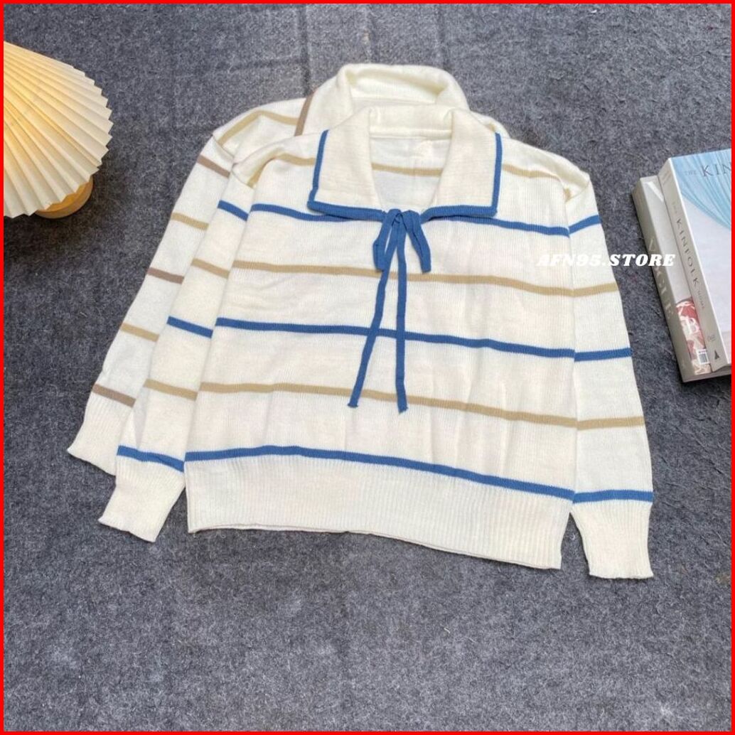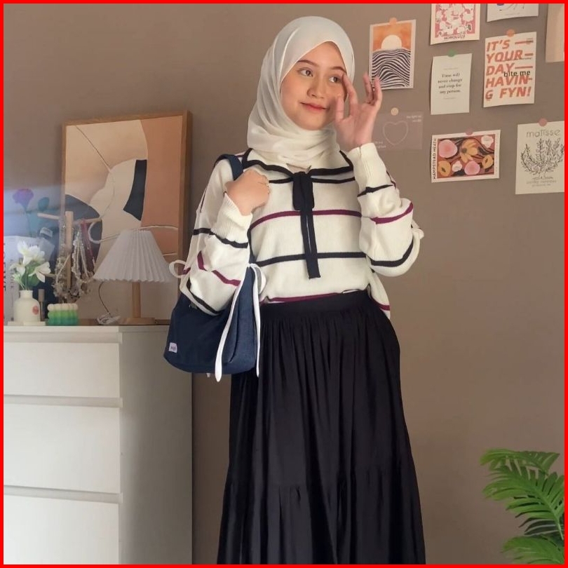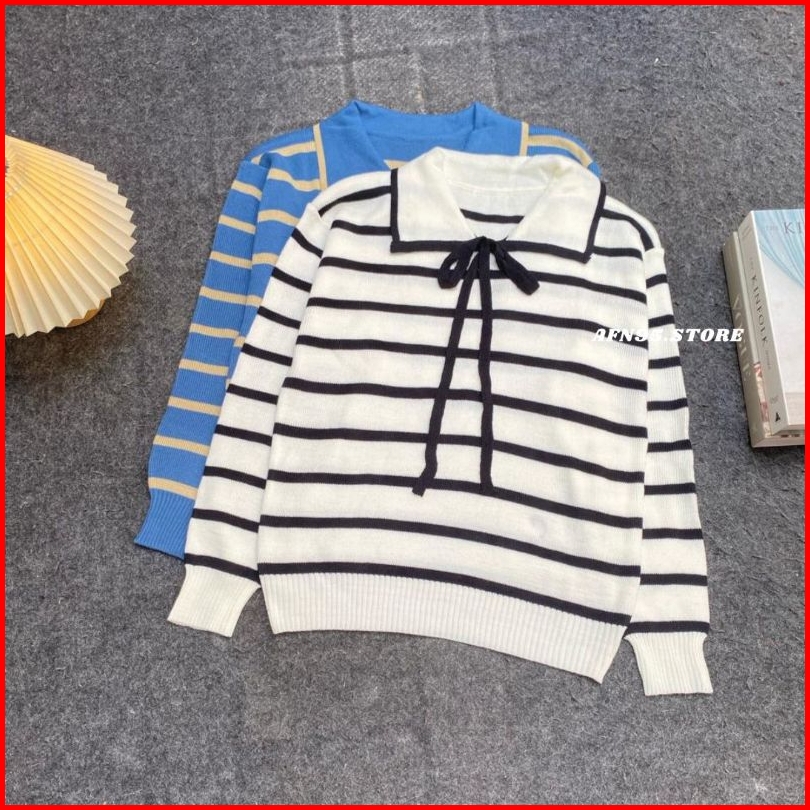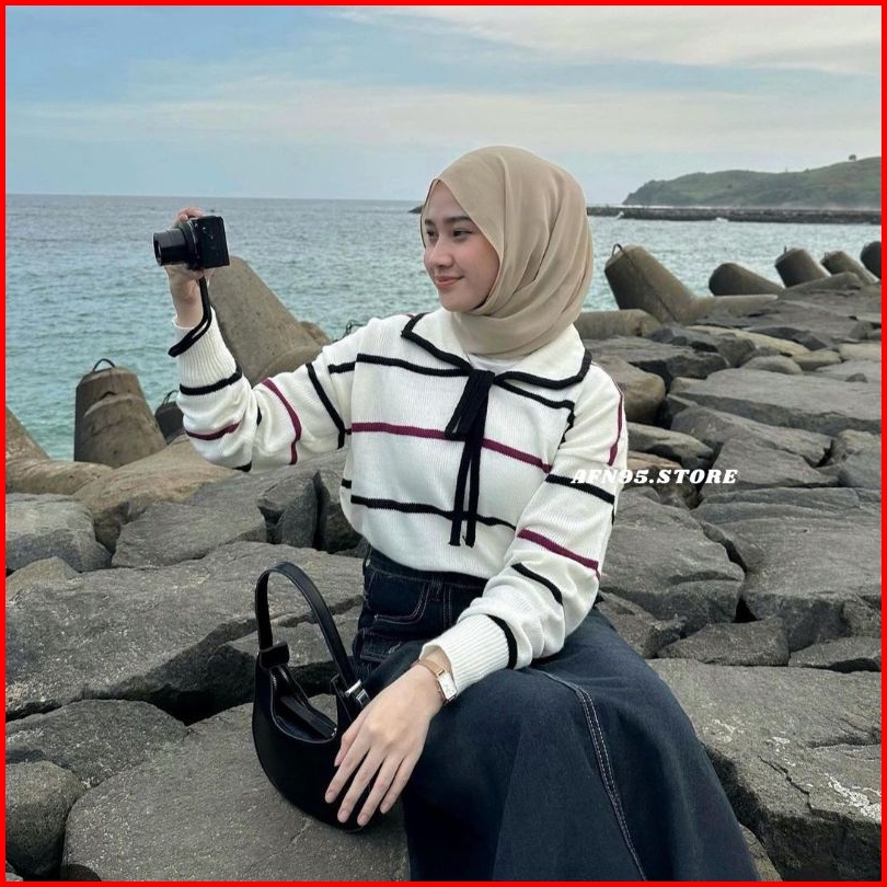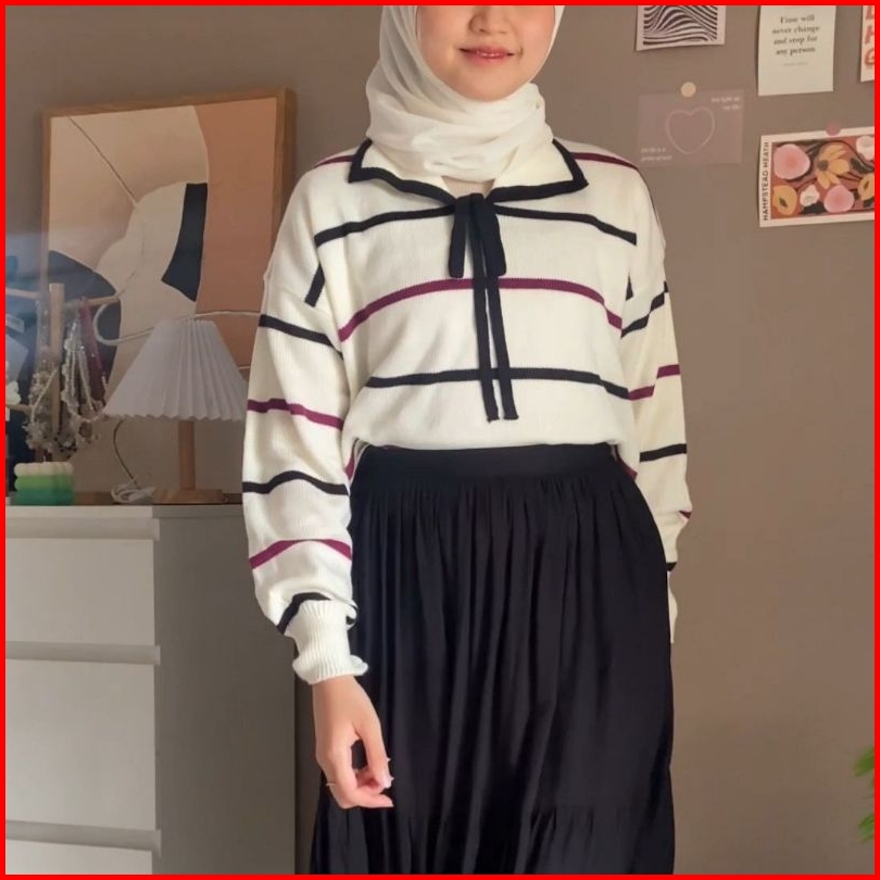 Sena Atasan Wanita Rajut Motif Garis Kerah Premium