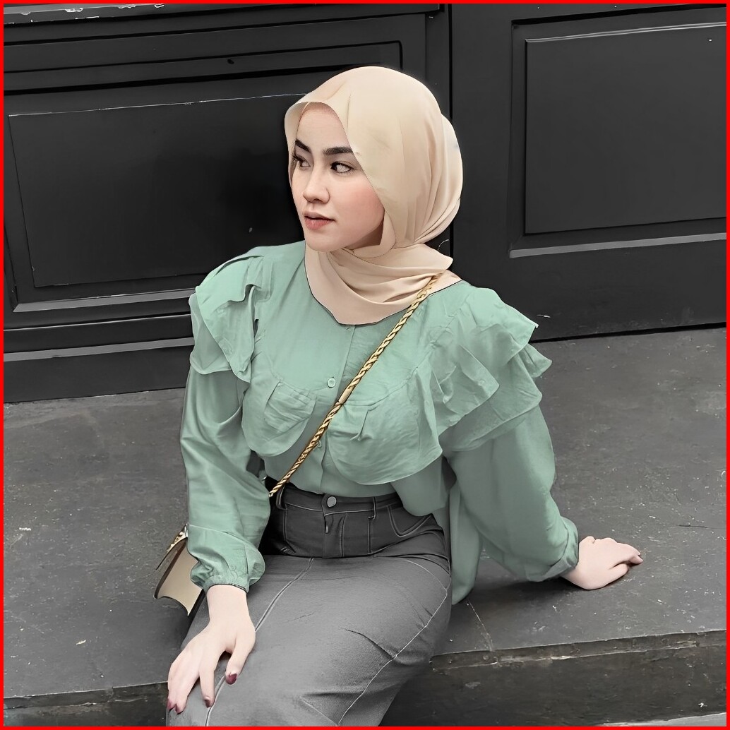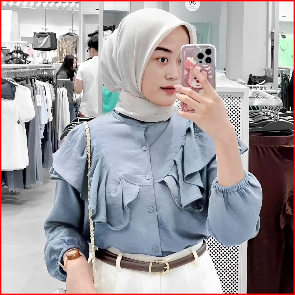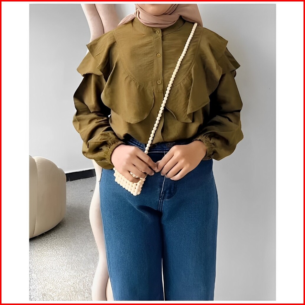 Blouse Wanita Ruffle Blouse Wanita Korean Style Baju Atasan Wanita Terbaru Kemeja Wanita Lengan Panjang Atasan Wanita Pu