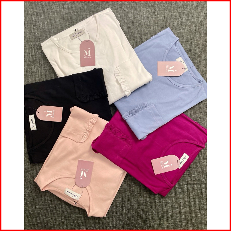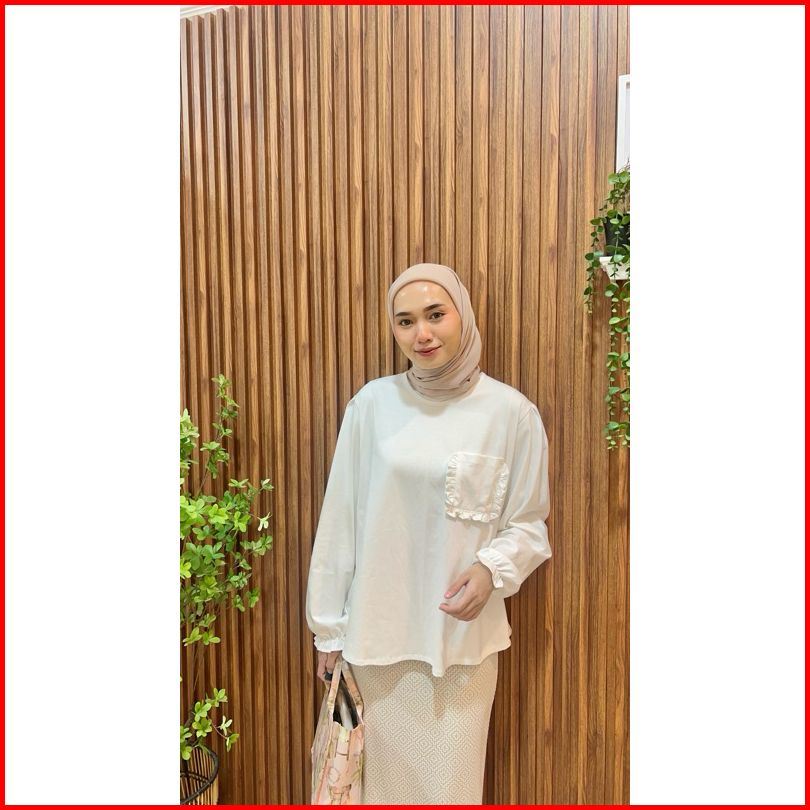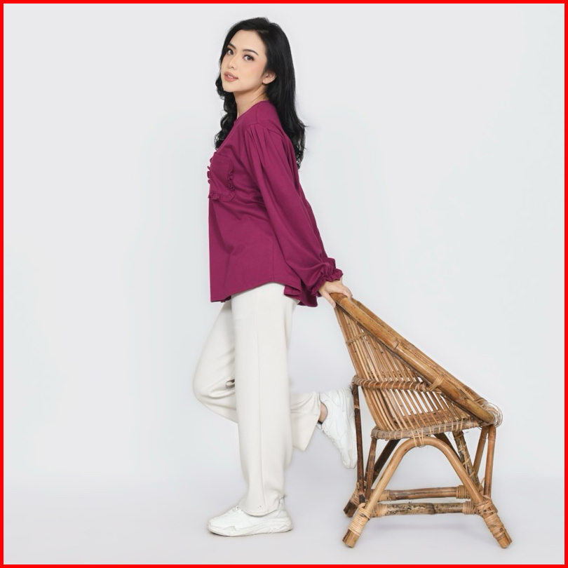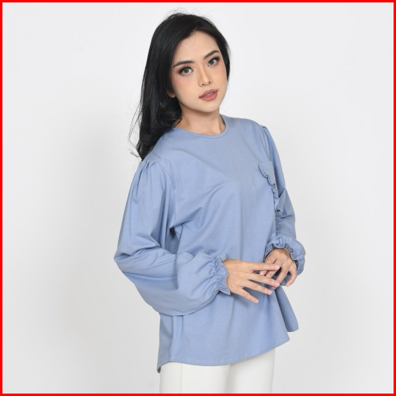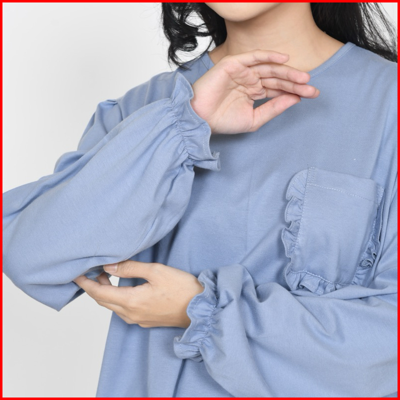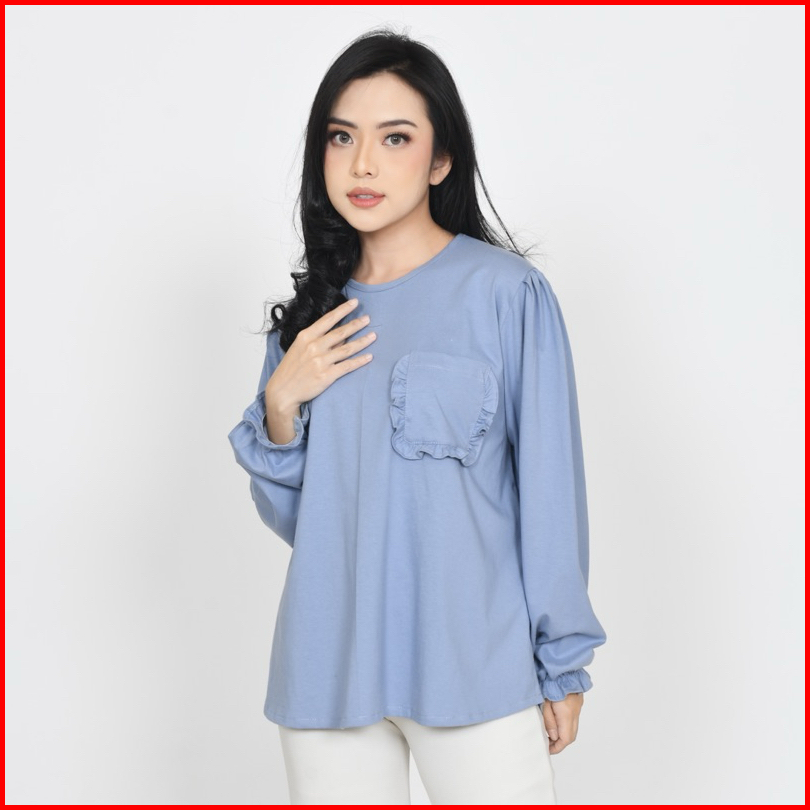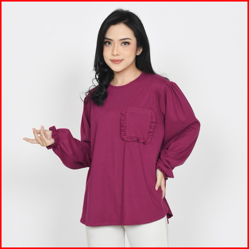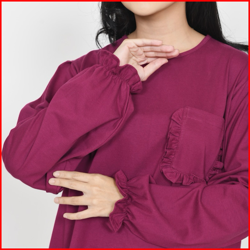 Peony Top Ruffle Kaos Lengan Panjang Wanita Saku