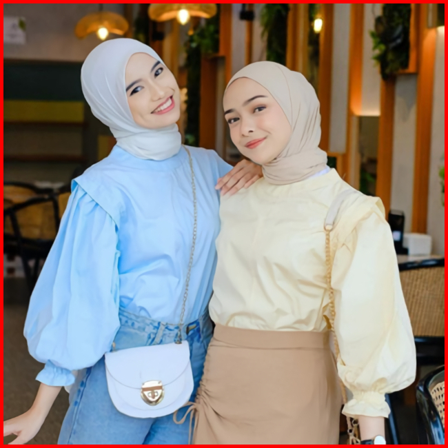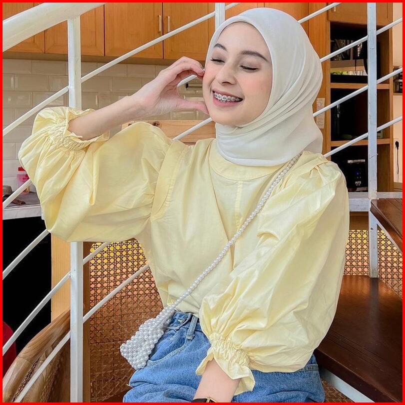 Moni Blouse Katun Linen - Blouse Puffy Lengan Balon - Atasan Wanita Korean Style