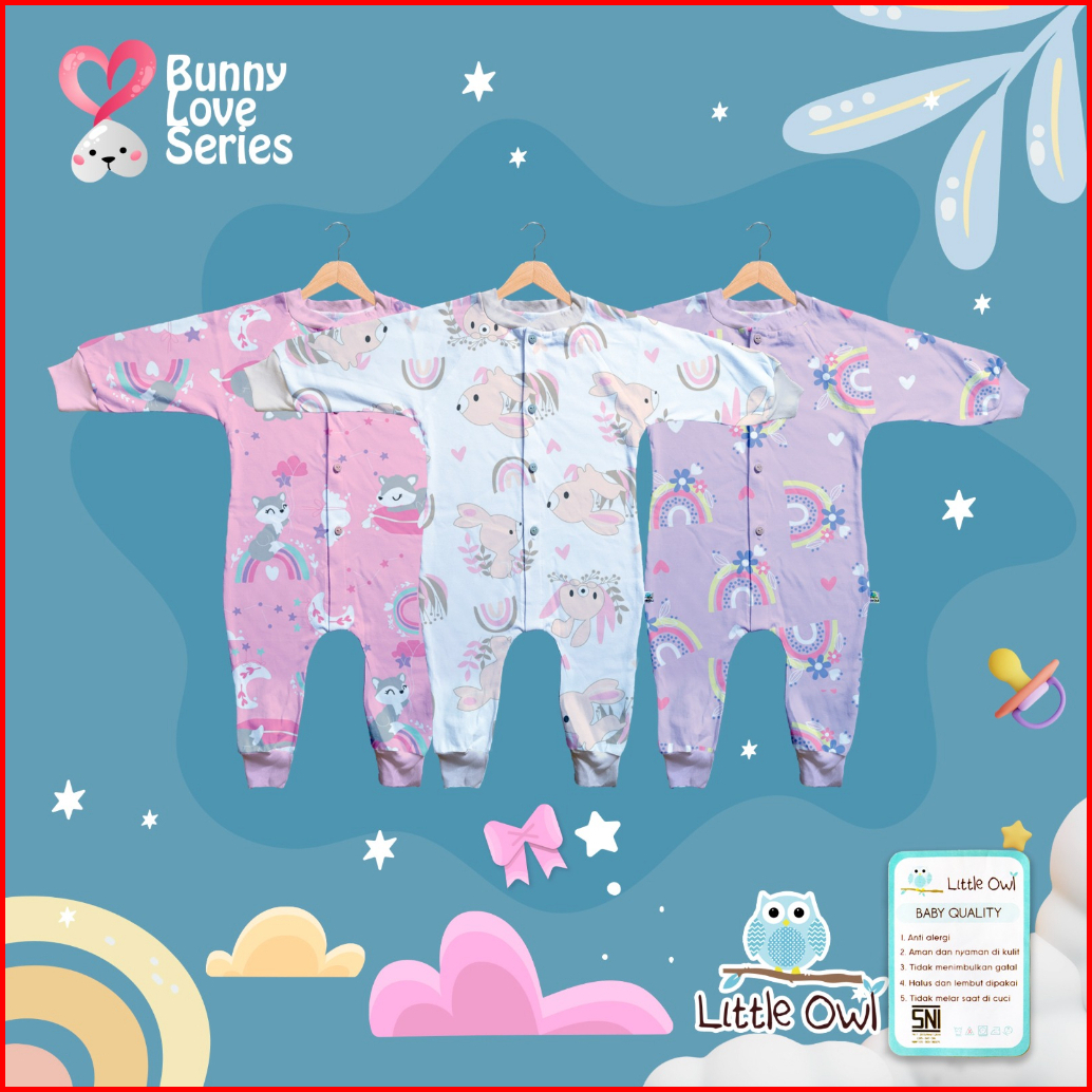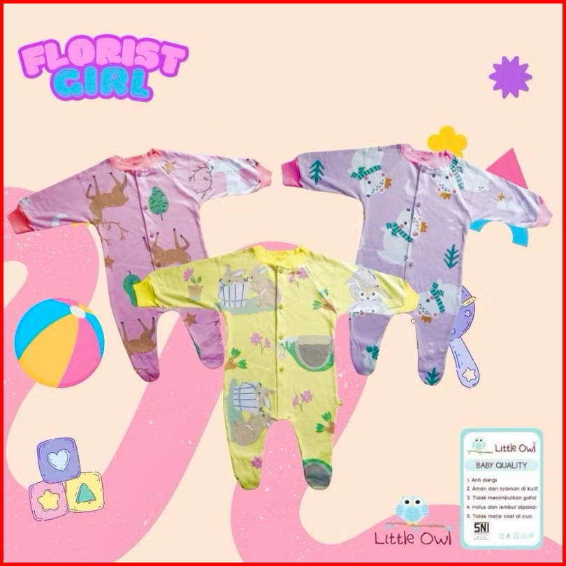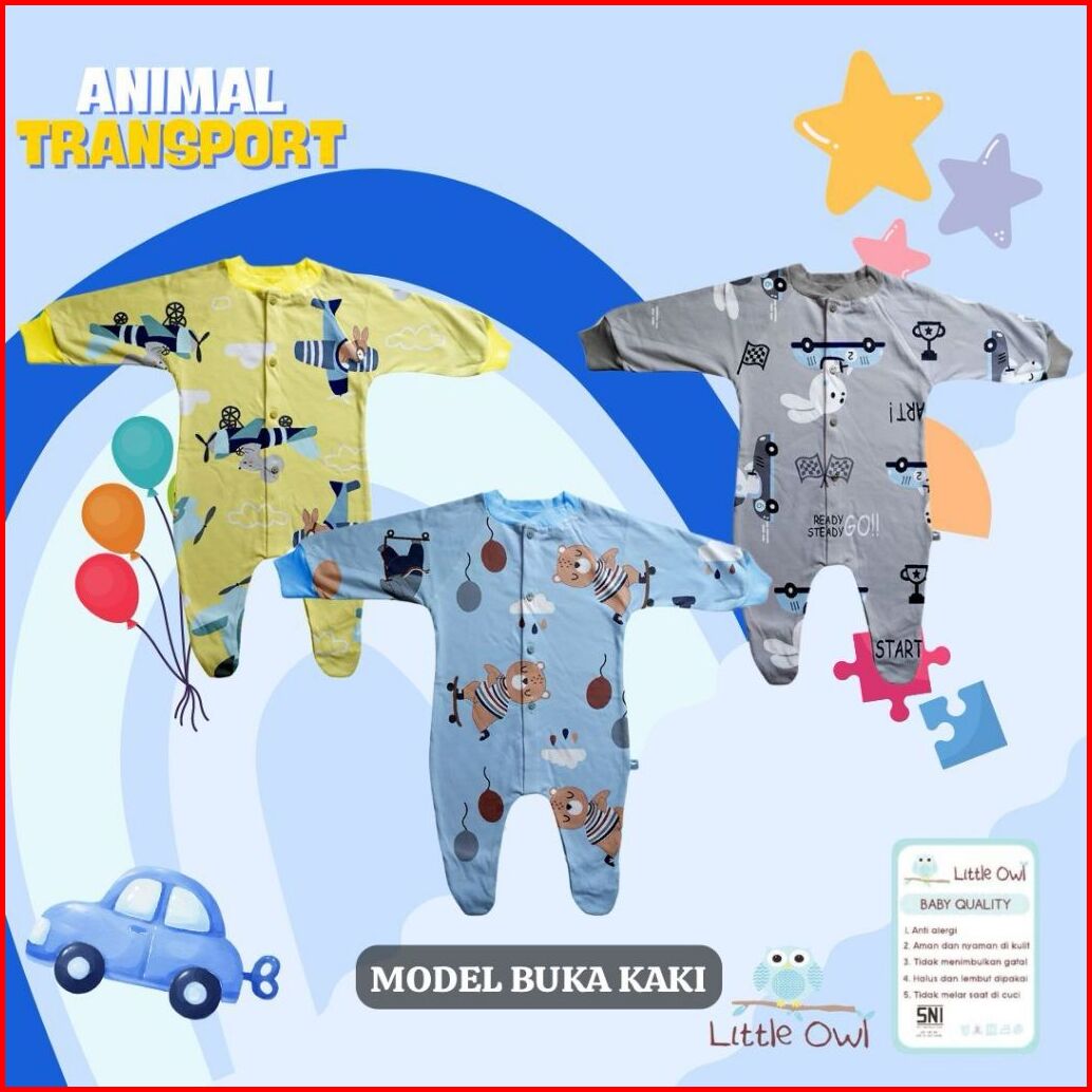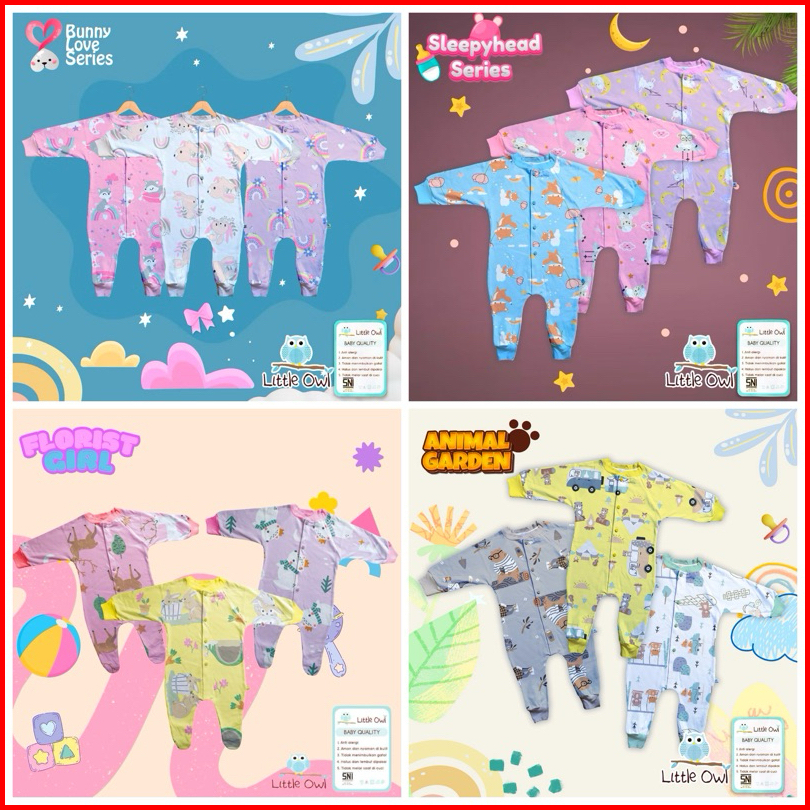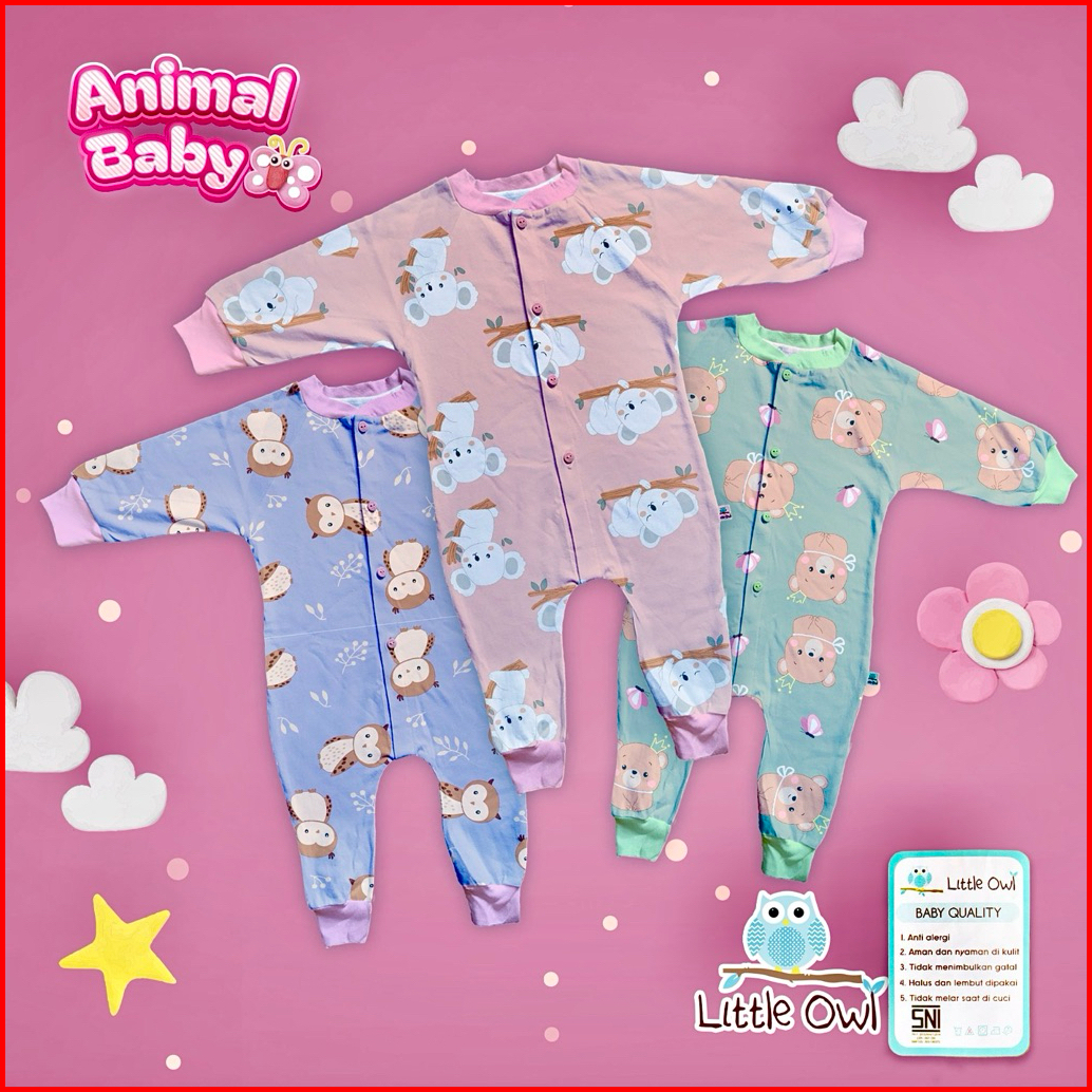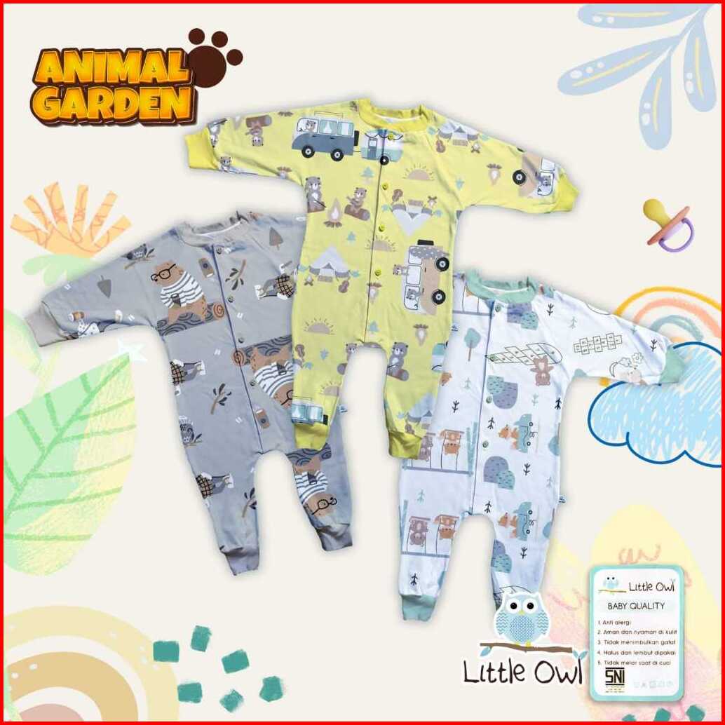 3 Pcs Sleepsuit Little Owl Baju Kodok Bayi 0-24 Bulan Motif Jumper Panjang Newborn Piyama