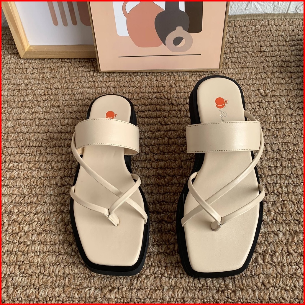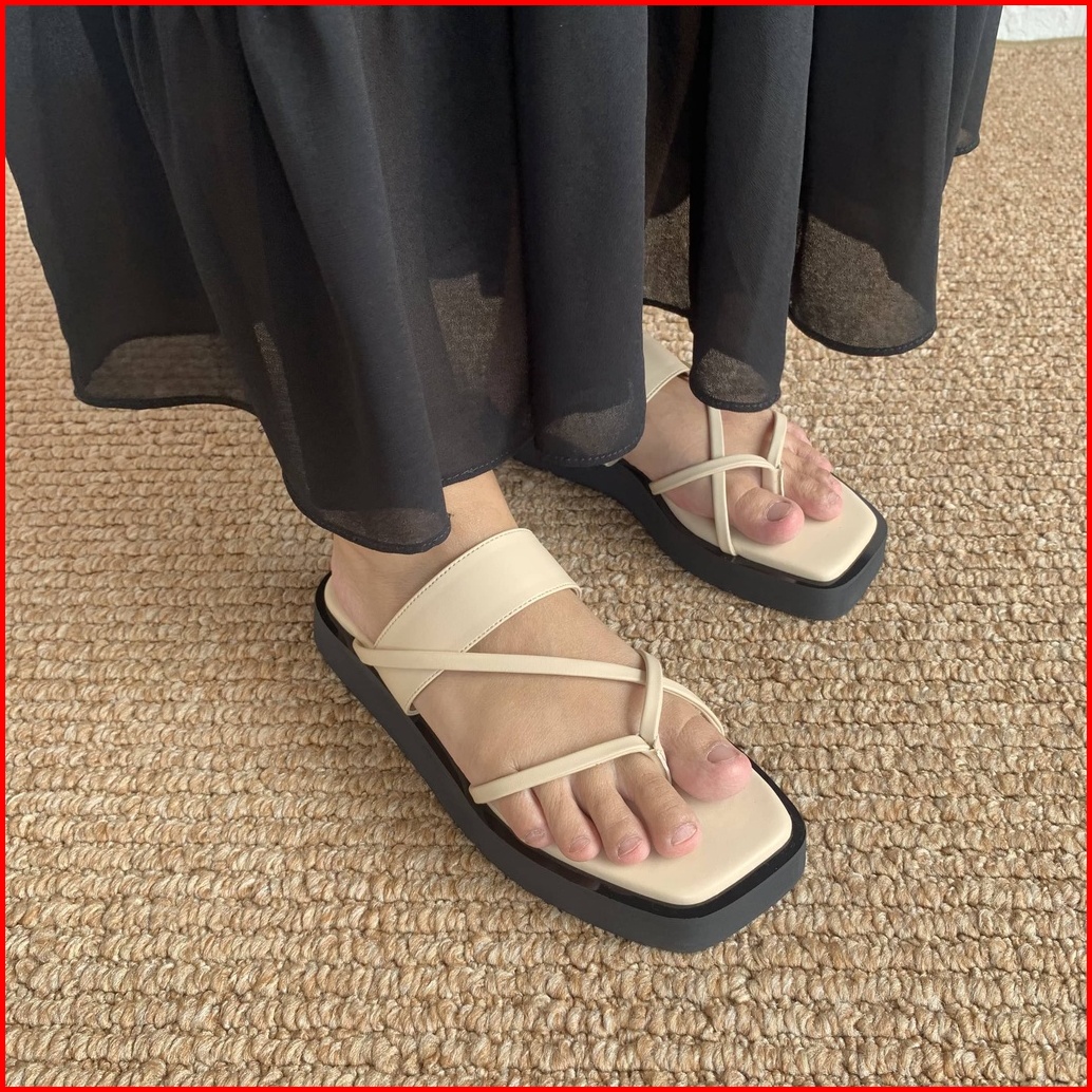 Peach Rebecca Sandal Wanita Platform - Sandal Tali Wedges Wanita - Sandal Wanita Kekinian
