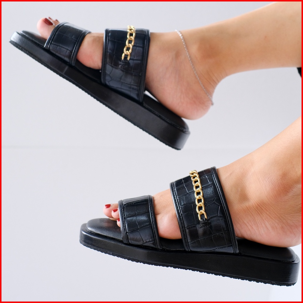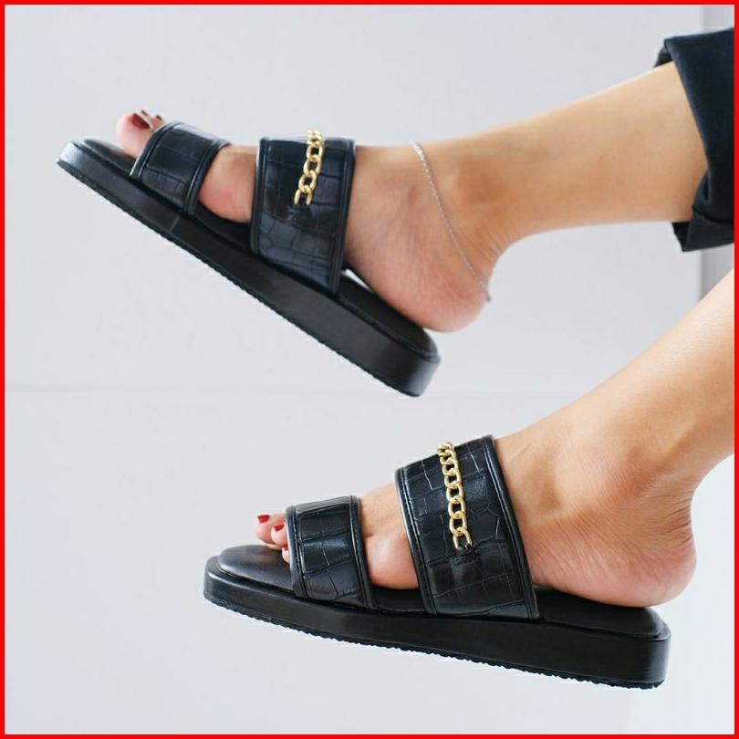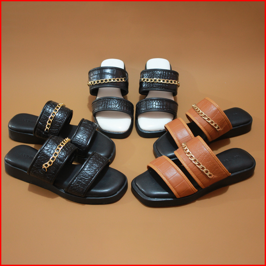 Sandal Wanita Platform Leyca Sendal Cewek Teplek Wedges Hak 2 Cm Model Selop Tali Sandal Flat Wanita Kekinian Terbaru