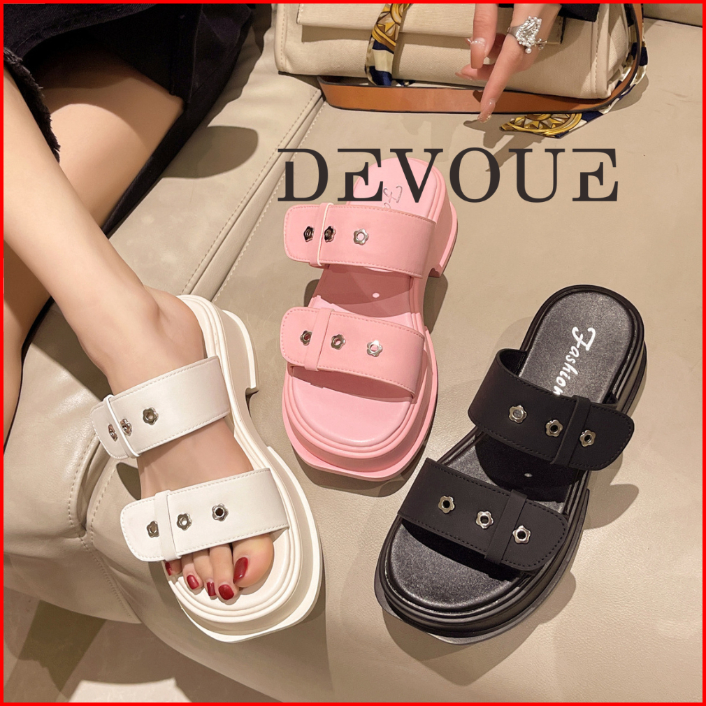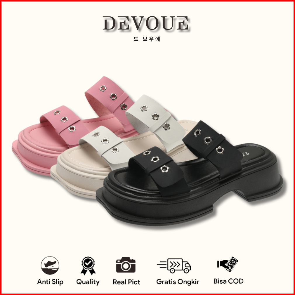 Devoue 016- Sandal Wedges Tali Flatbed Kekinian Fashion Wanita Free Box