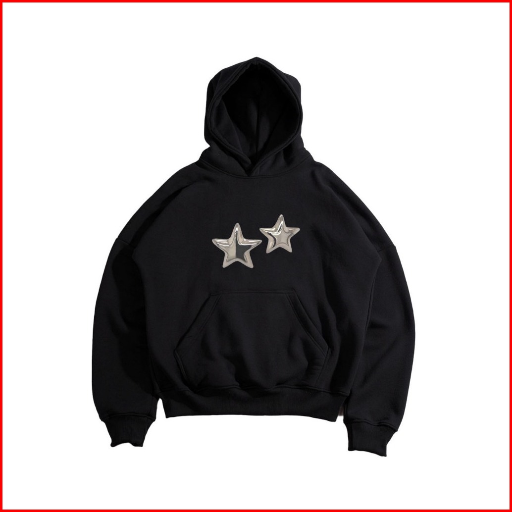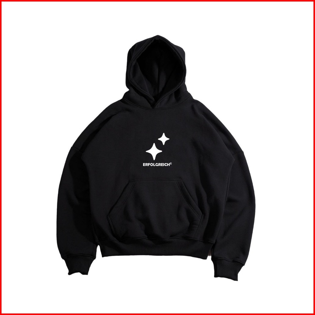 Erfolgreich - Hoodie Boxy Oversize Cut Fit Star Chrome Twin Hitam Black Unisex Pria Wanita Cotton Premium Fleece 280 300