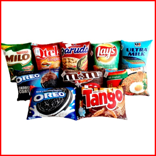 Milo, Qtela, Garuda, Lays, Ultra Biru, Oreo cadburry, Oreo Milk, M&M, Indomie Goreng, Tango, Indomie AyamBawang