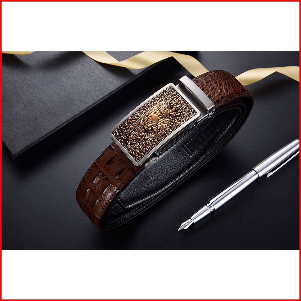 Bgs-059 Sabuk Pria Fashion Kulit Lapis Kedua Gesper Otomatis Belt Style Kekinian