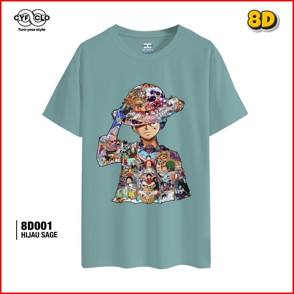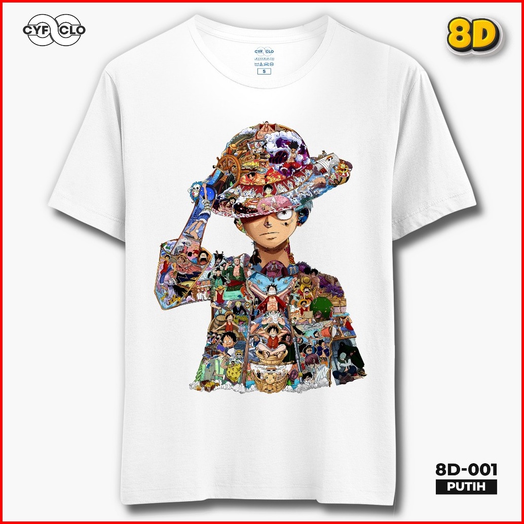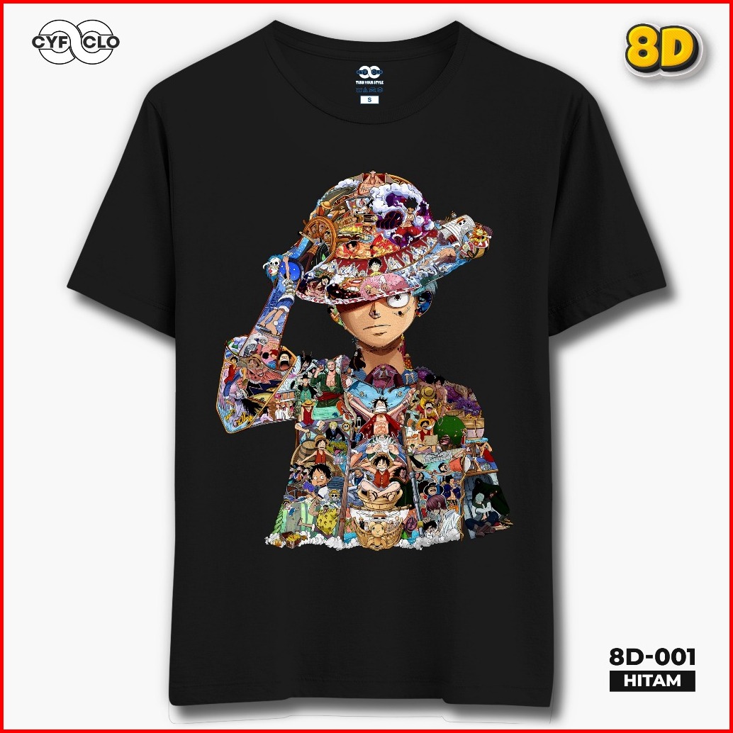 Cyfersia Kaos Distro Anime One Piece Luffy 8d Katun Kualitas Premium Atasan Baju