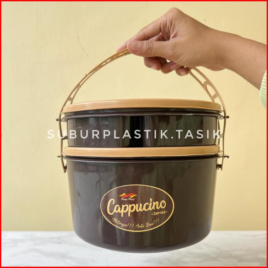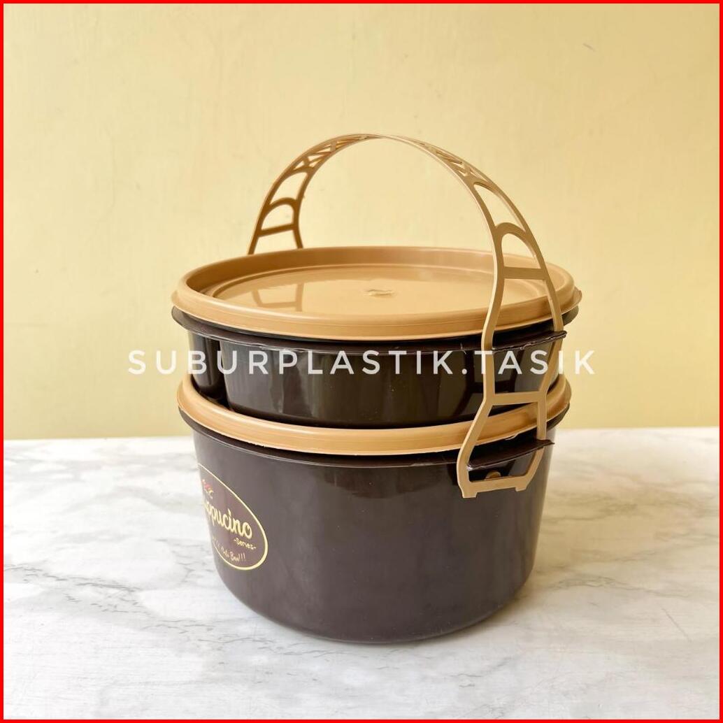 3 Pcs Rantang Plastik Capuccino 2 Susun 3 Liter 4 Sekat Coklat Wadah Hajatan Bulat Bekal Piknik