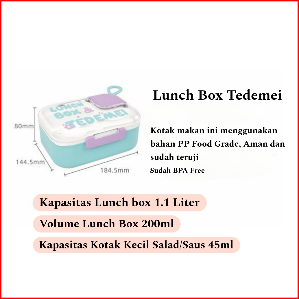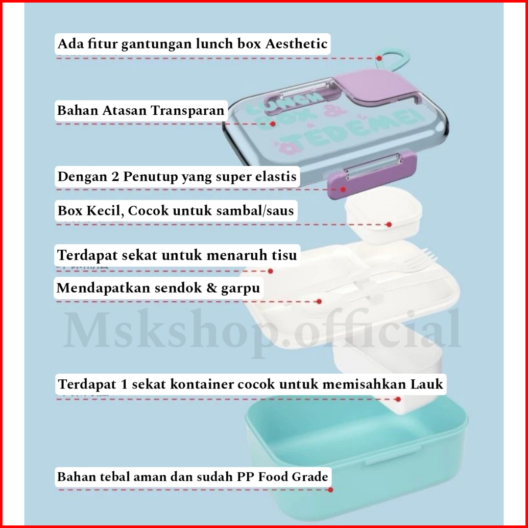 Lunch Box Tedemei Kotak Makan Bekal Tedemei Kotak Bekal Anak Dan Dewasa Premium Anti Tumpah Free Sendok Dan Garpu