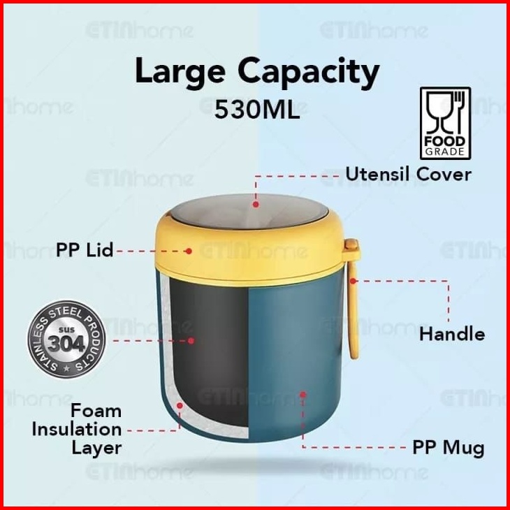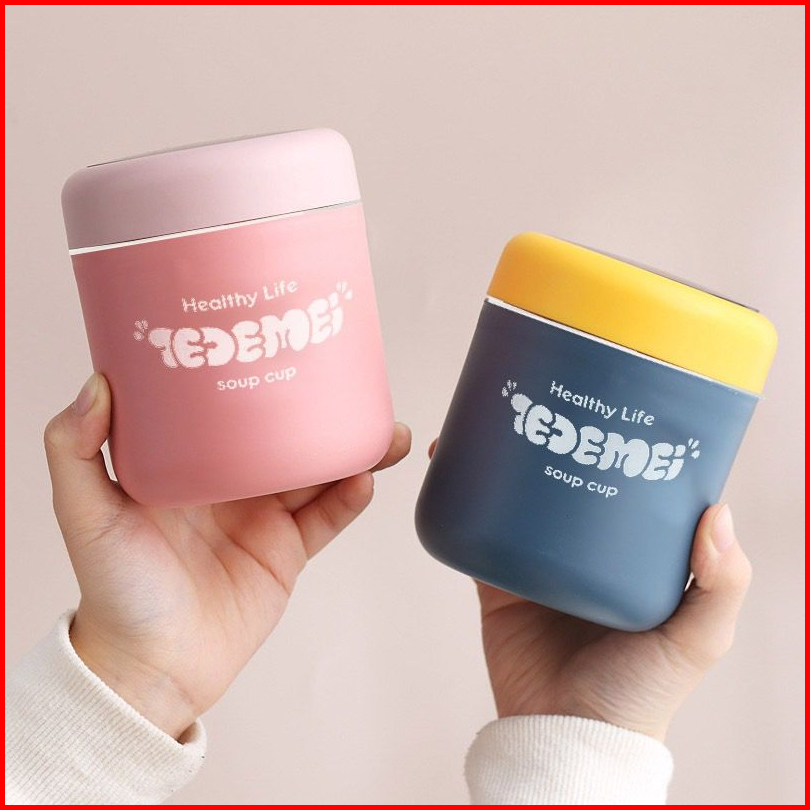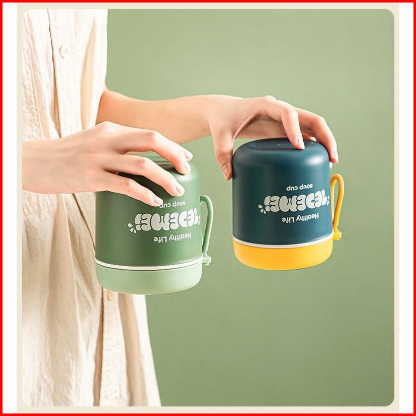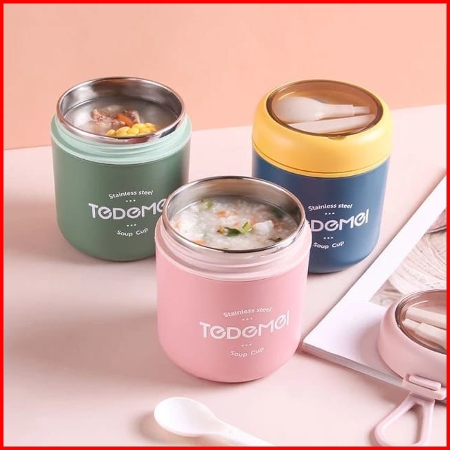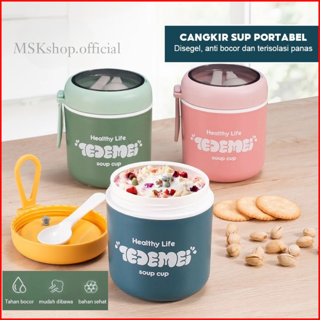 Kotak Makan Soup Cup Stainless Portable Soup Cup Anti Tumpah Tedemei Cup Tahan Panas Free Sendok