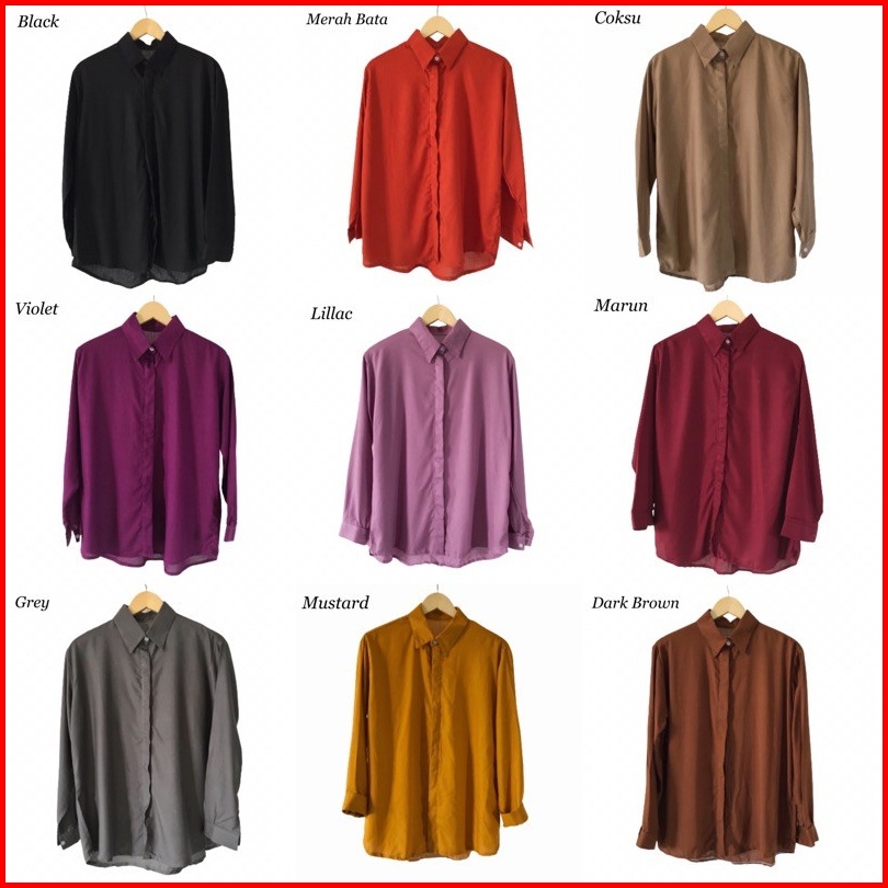 Coksu, Wardah, Maroon, Hitam, Grey, Navy, Lime, Hijau Tua, Olive, DARK Mocca, Brokenwhite, Random, Mustard, Soft Blue, Tosca, Teracota, Dusty Pink, Lilac