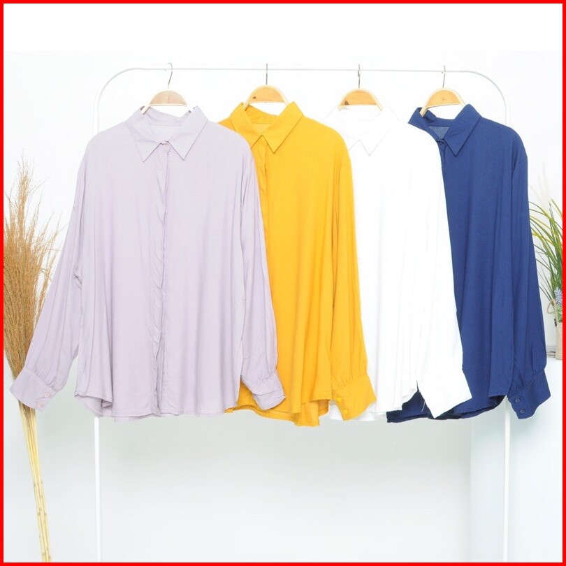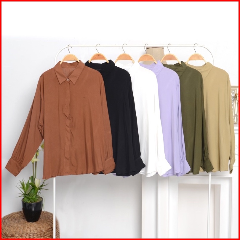 Kemeja Wanita Polos Basic Bahan Mosscrepe