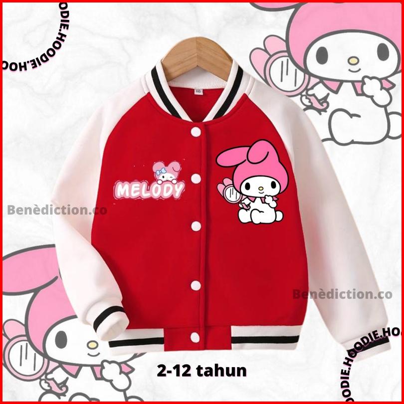 Jaket Varsity Anak Perempuan My Melody Umur 2 3 4 5 6 7 8 9 10 11 12 Tahun Jaket Baseball Anak Cewe Unisex Hoodie Swaete