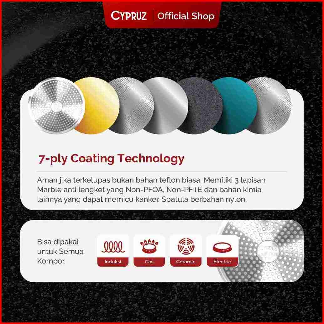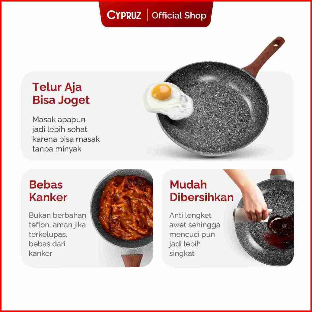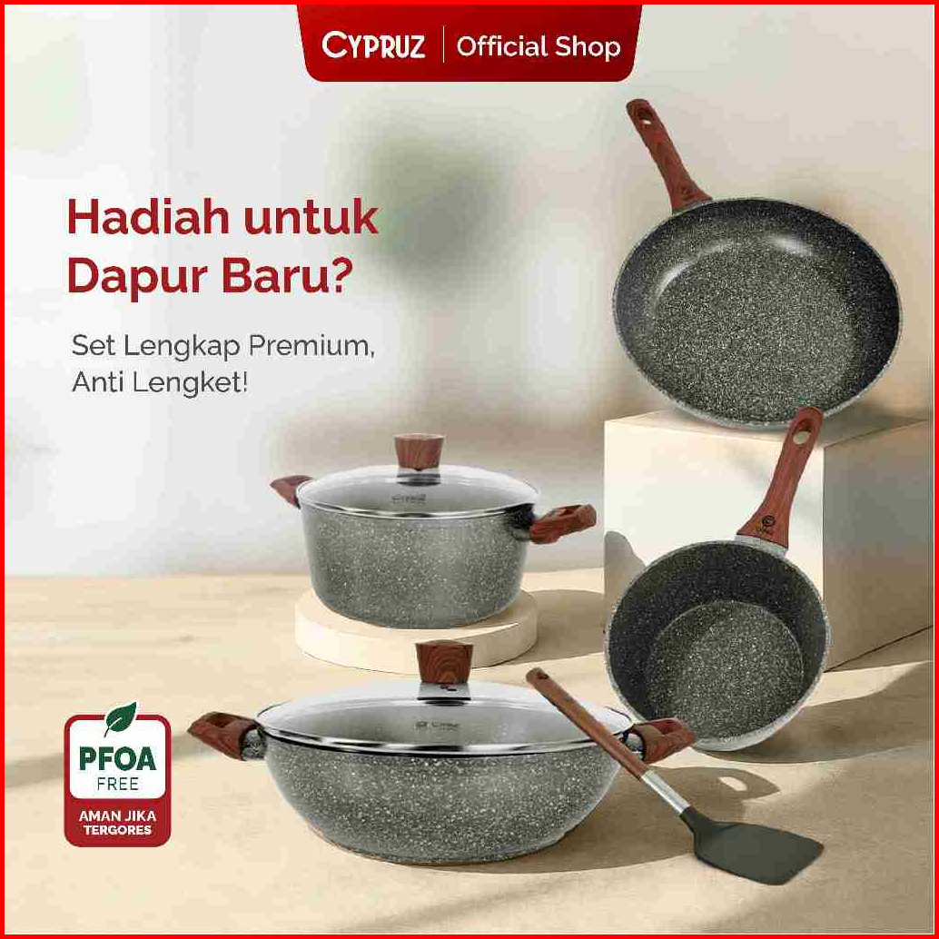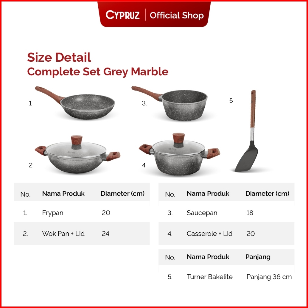 Cypruz Cookware Set Grey Marble Series Panci Set Anti Lengket Premium 7pcs