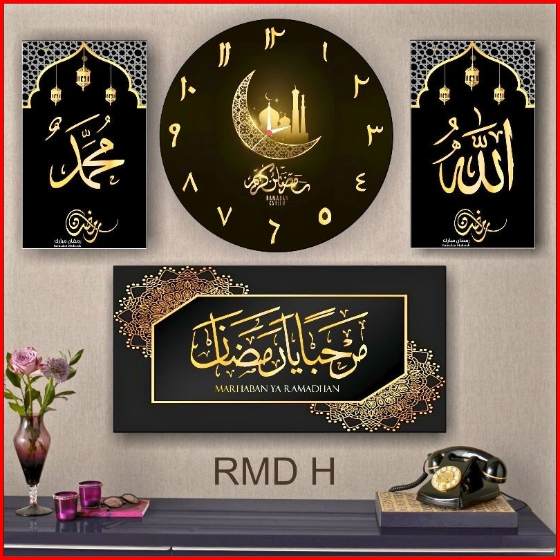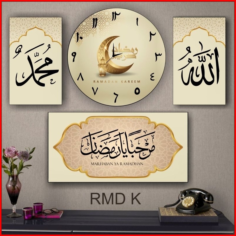 Jam Dinding Kaligrafi Satu Set Hiasan Dinding Walldecor Jam Dinding Allah Muhammad Ramadhan