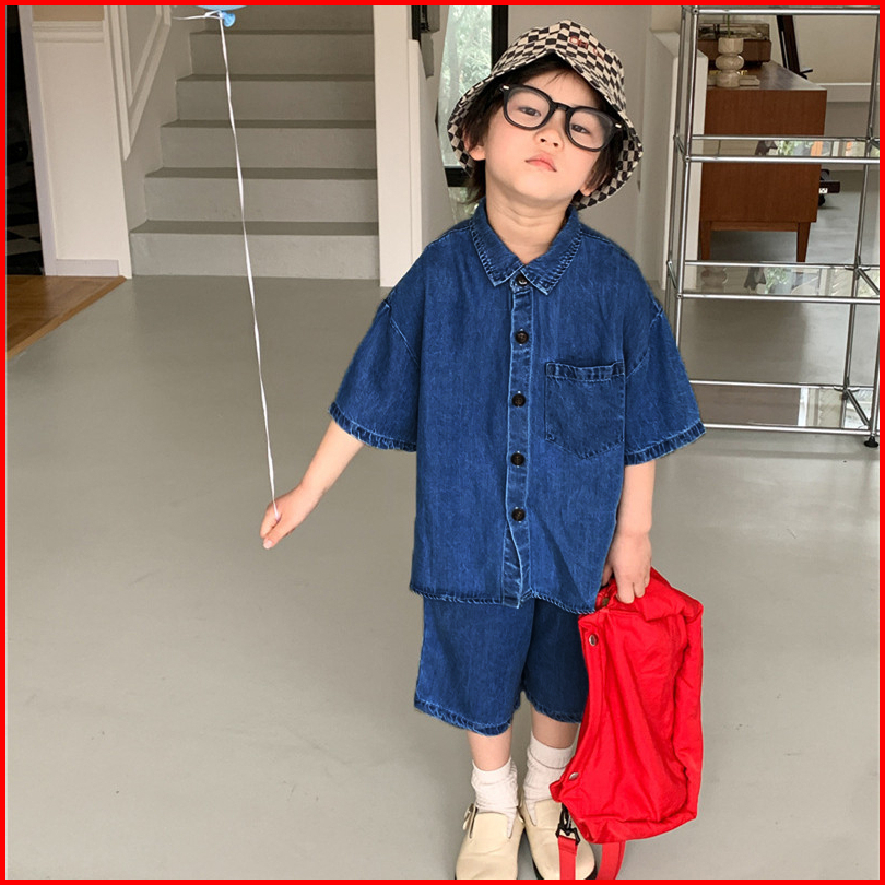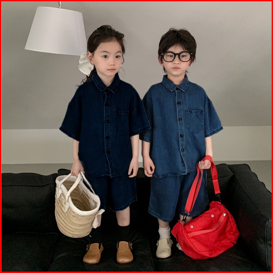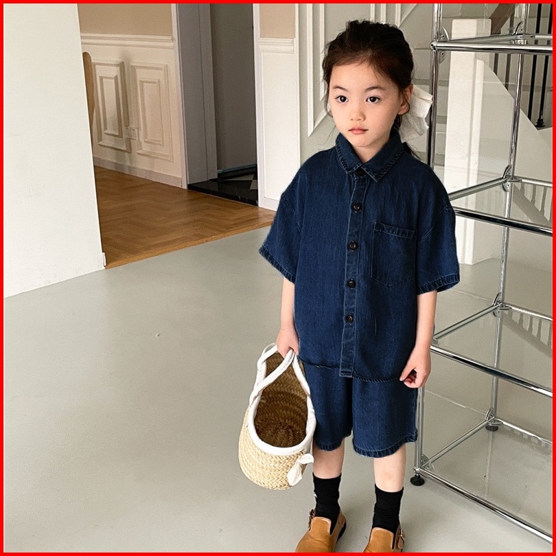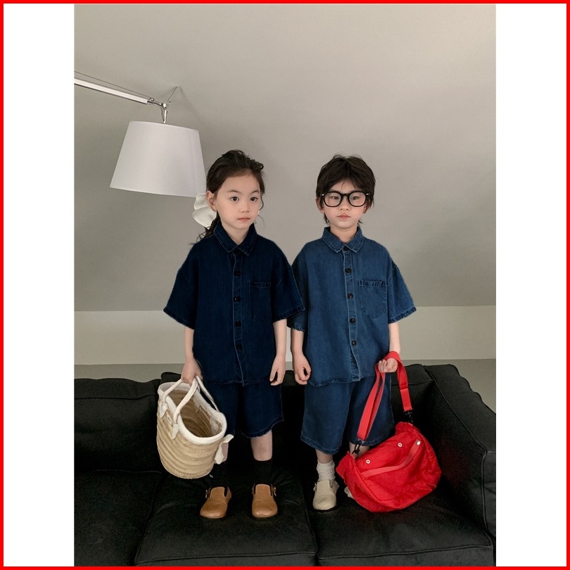 Setelan Anak Perempuan Dan Laki Laki Usia Bahan Jeans 1 - 6 Tahun - Jacob Denim Set Kids