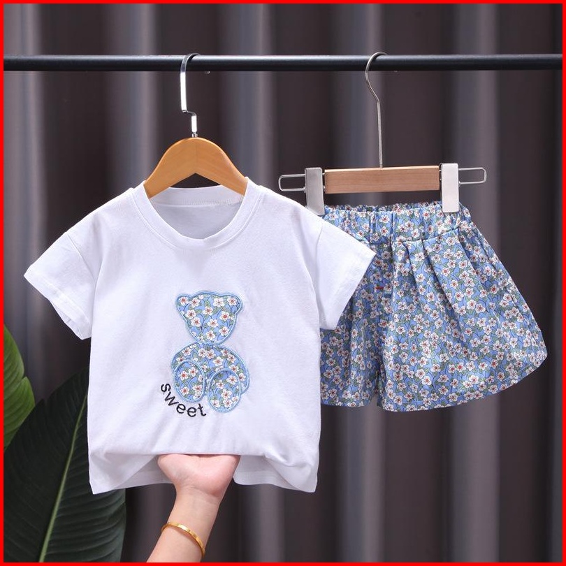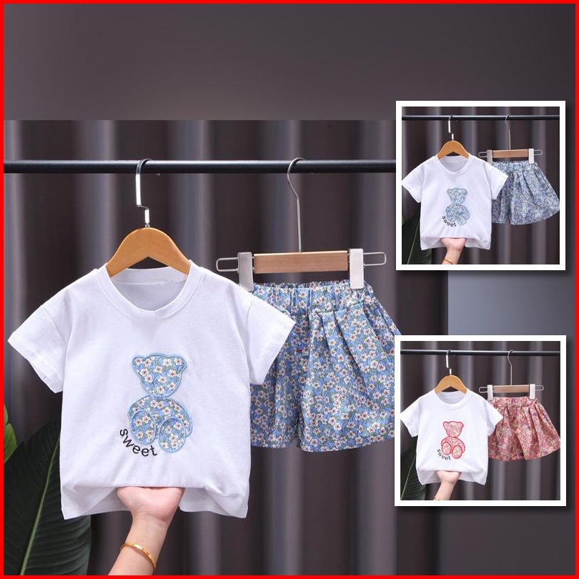 Setelan Anak Perempuan Motif Bunga Usia 1 - 6 Tahun - Sweet Bear Set