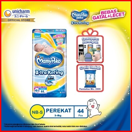 Mamypoko X-tra Kering - Nb-s 44 - Popok Perekat Newborn Bayi Baru Lahir
