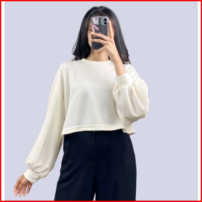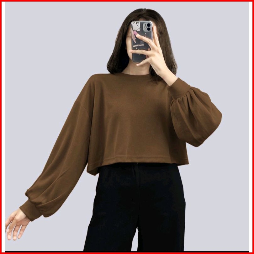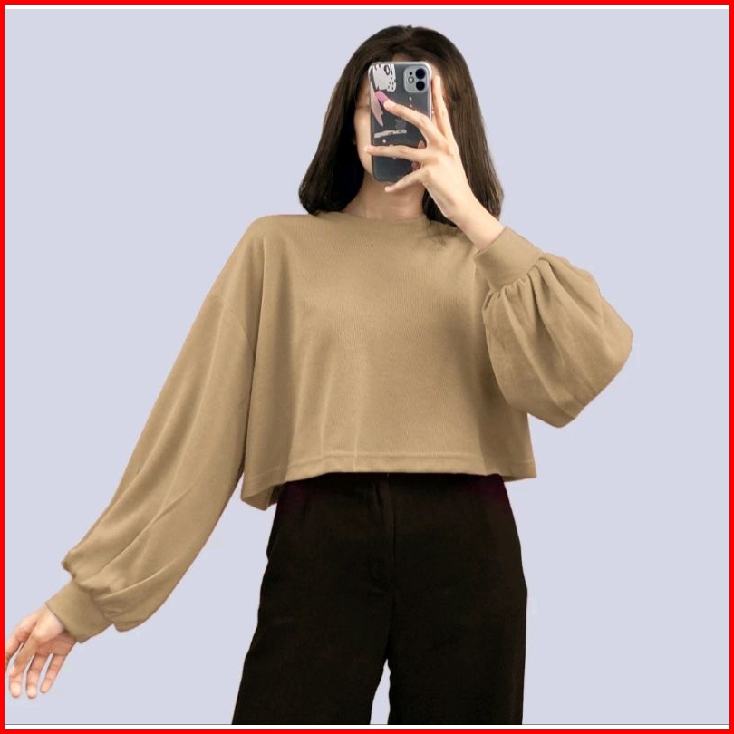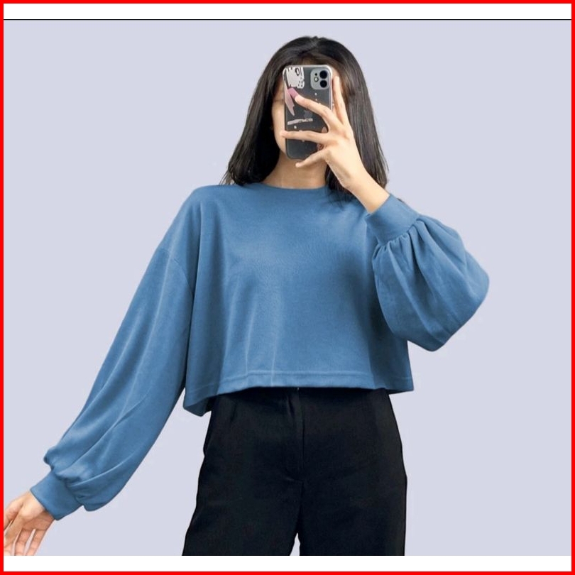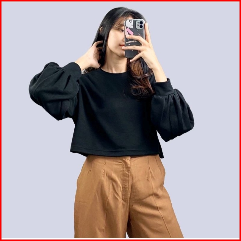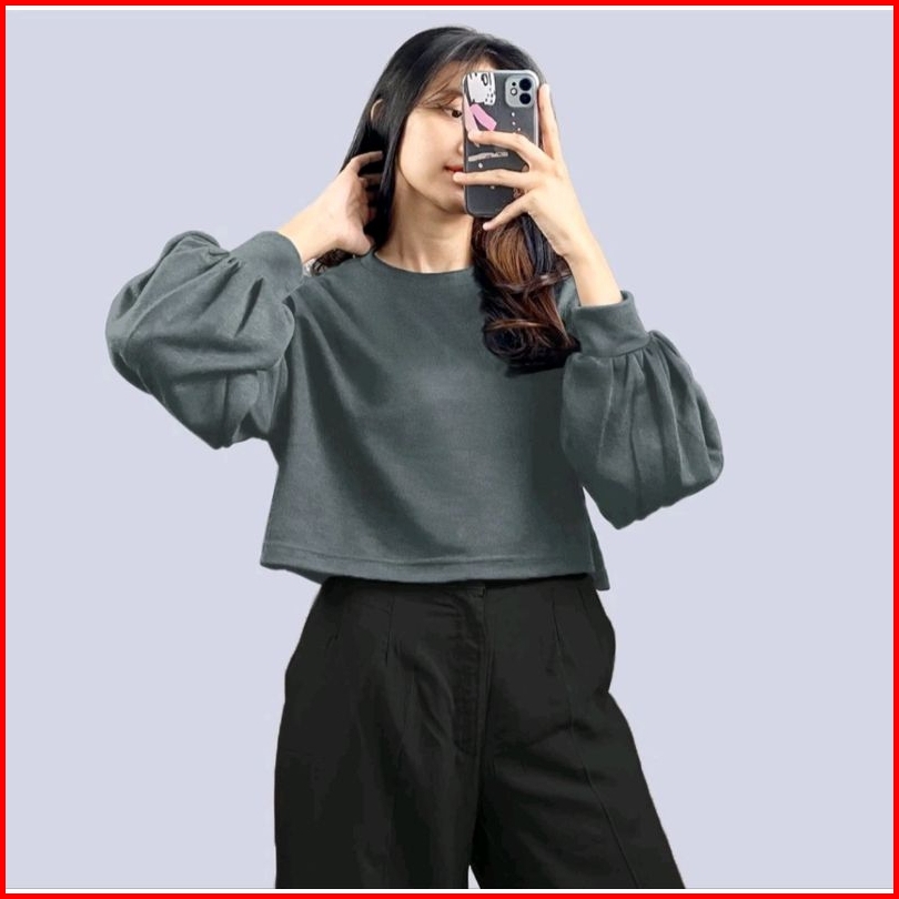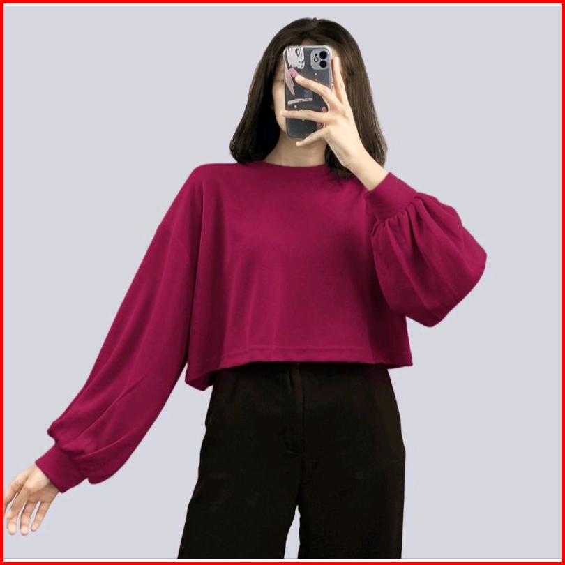 Kaos Lengan Balon Crop Top Kaos Lengan Balon Bahan Scuba Import Premium