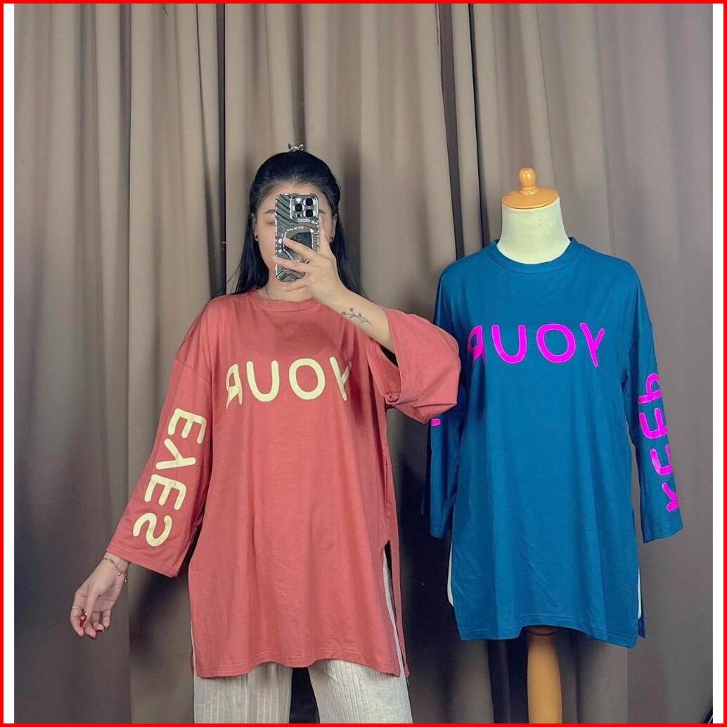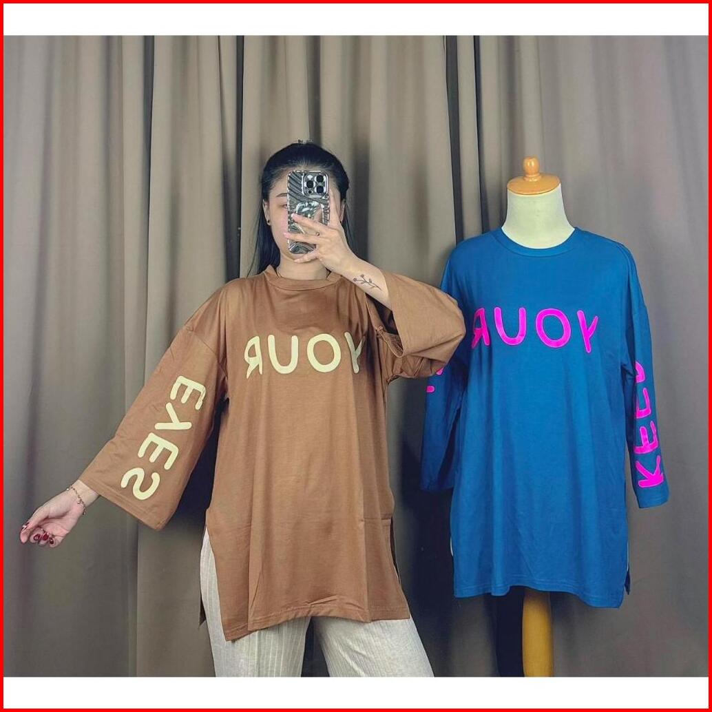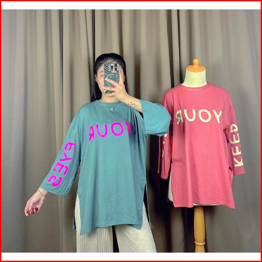Kaos Oversize Slit Samping Lengan 7 8 Keep Your Eyes Cocok Hijab Wanita