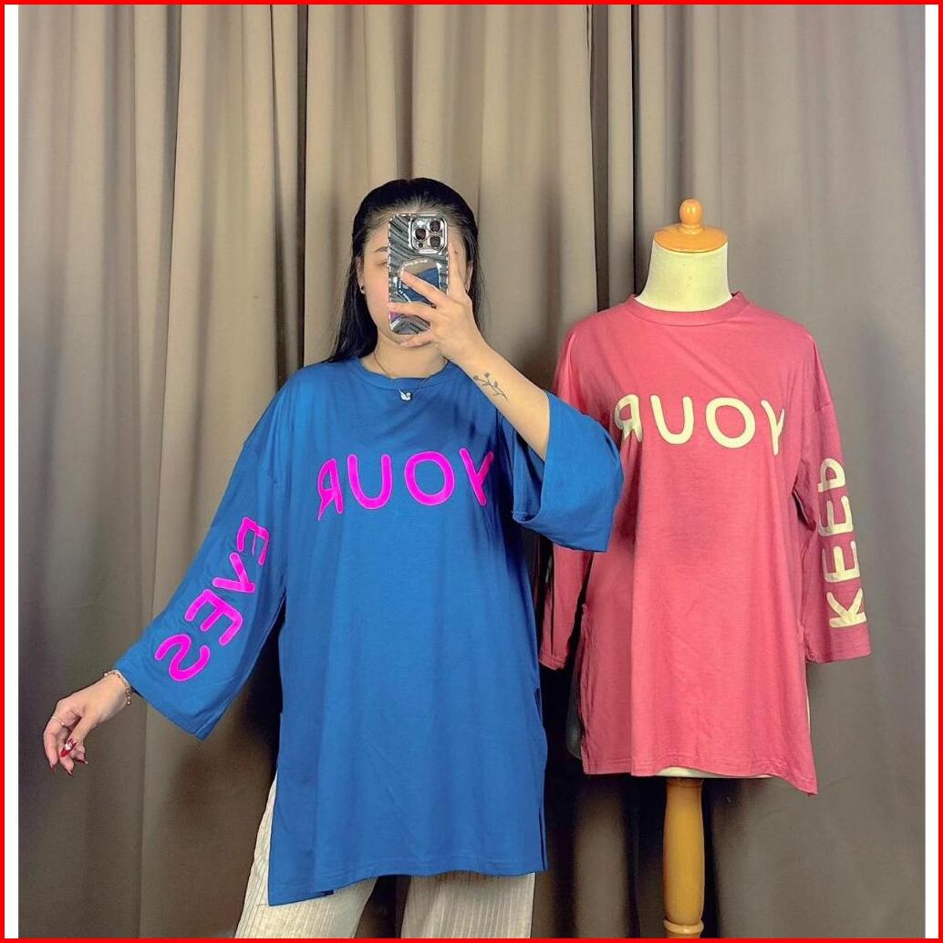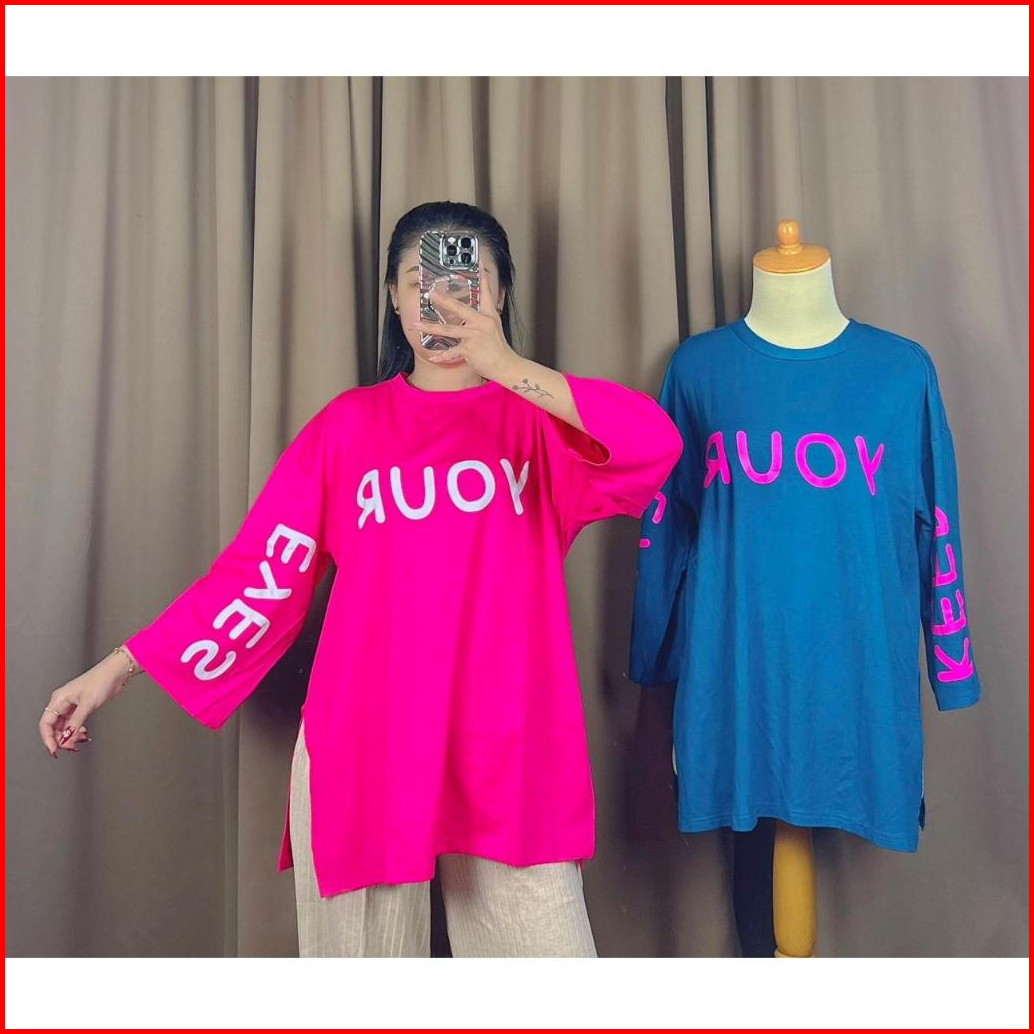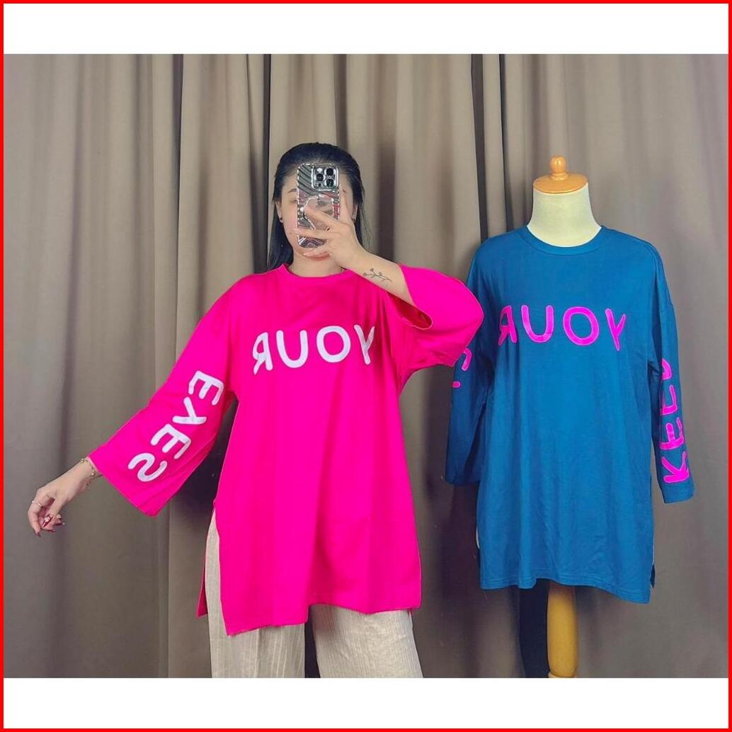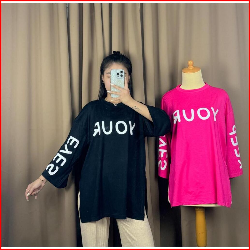 Kaos Oversize Slit Samping Lengan 7 8 Keep Your Eyes Cocok Hijab Wanita