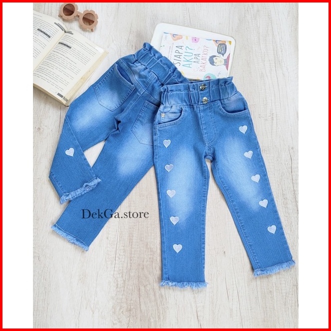 Celana Panjang Jeans Strech Anak Perempuan Usia 2-12tahun Bordir Love Bawahan Celana Rawis