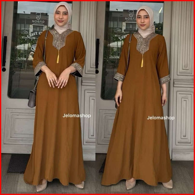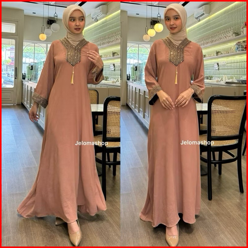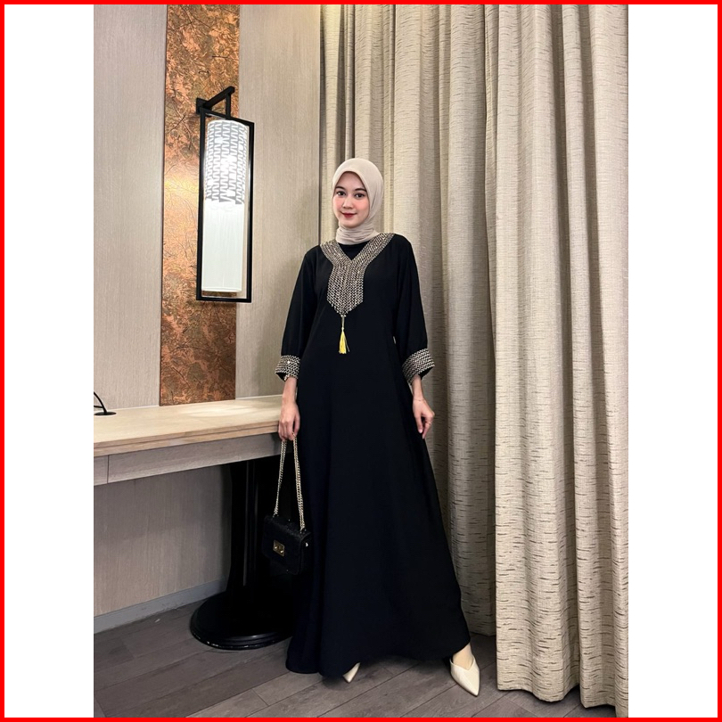 Gamis Muslim Wanita Humaira Abaya Turkey Terbaru 2024 Crinkle Airflow Luxury - Abaya Hitam - Abaya Dubai Pakaian Wanita