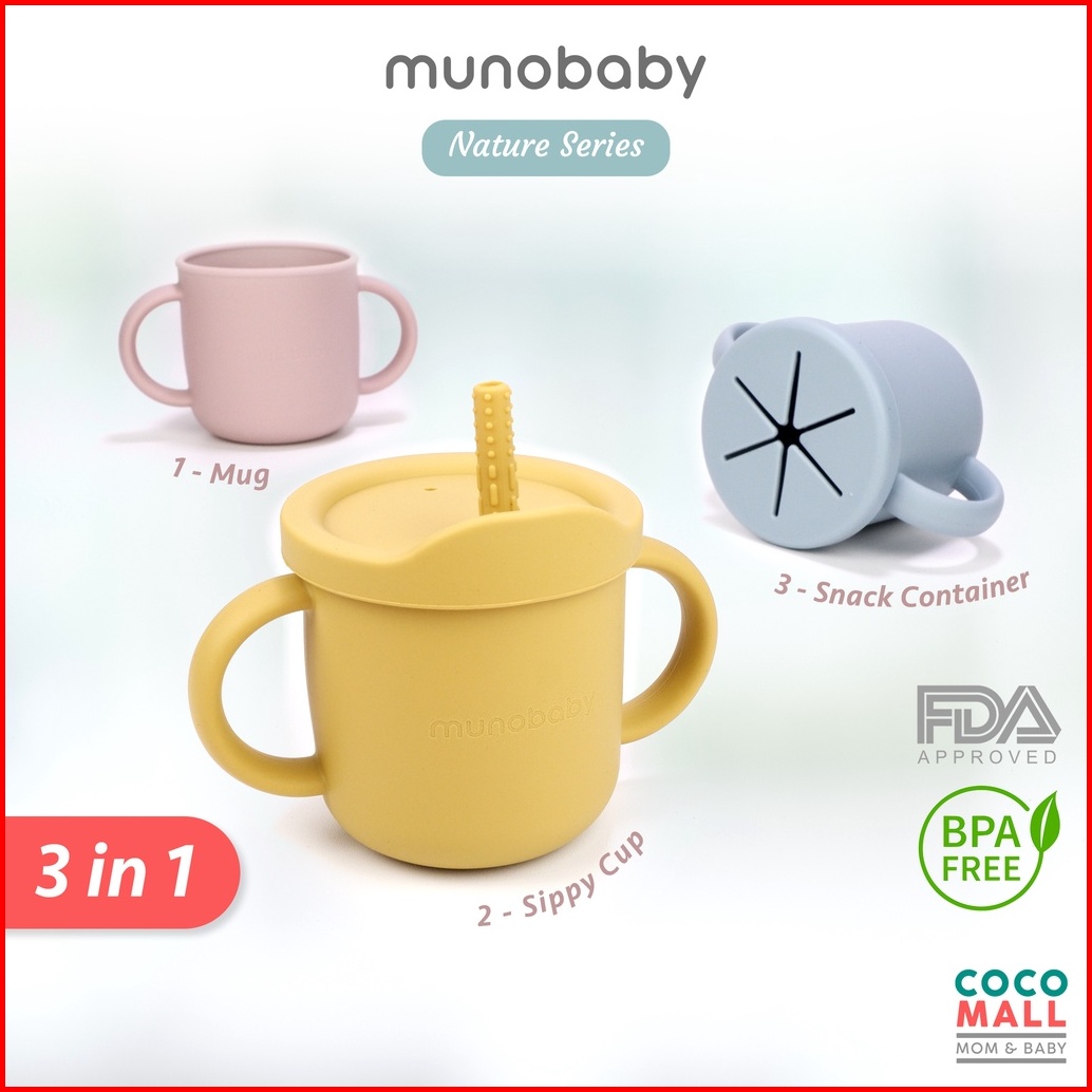 Cocomall Gelas Minum Anak 3in1 Nature Series - Silicone Sippy Cup Training Cup Bayi Anti Tumpah - Gelas Sedotan Anak Str