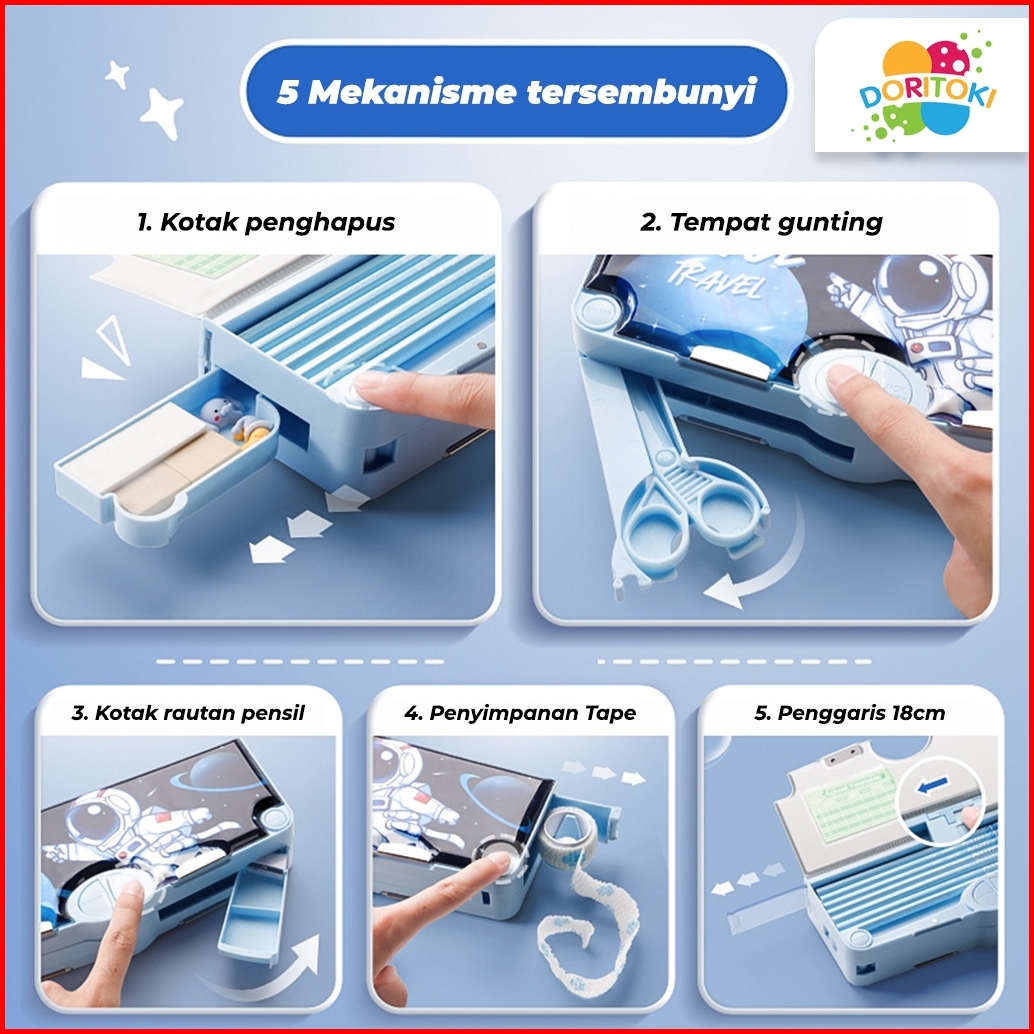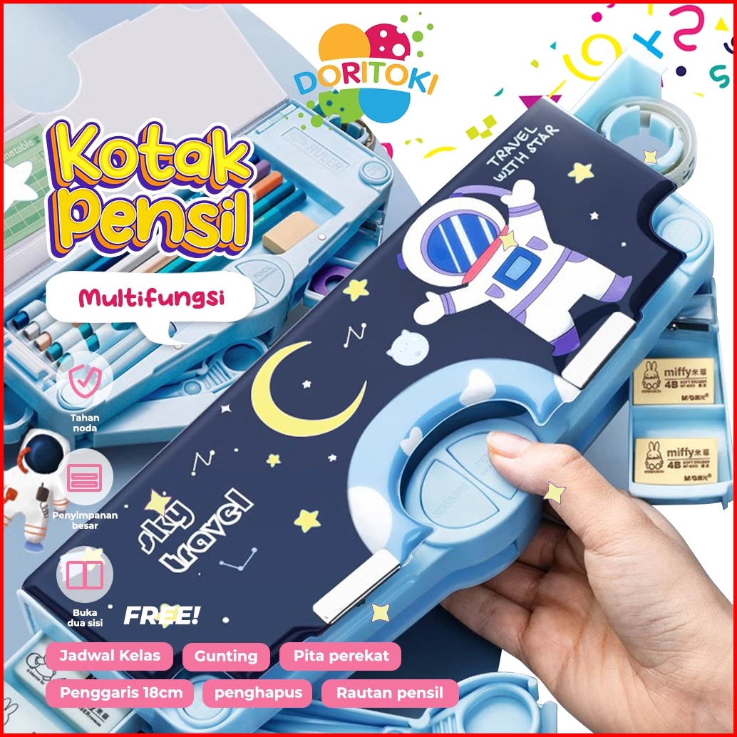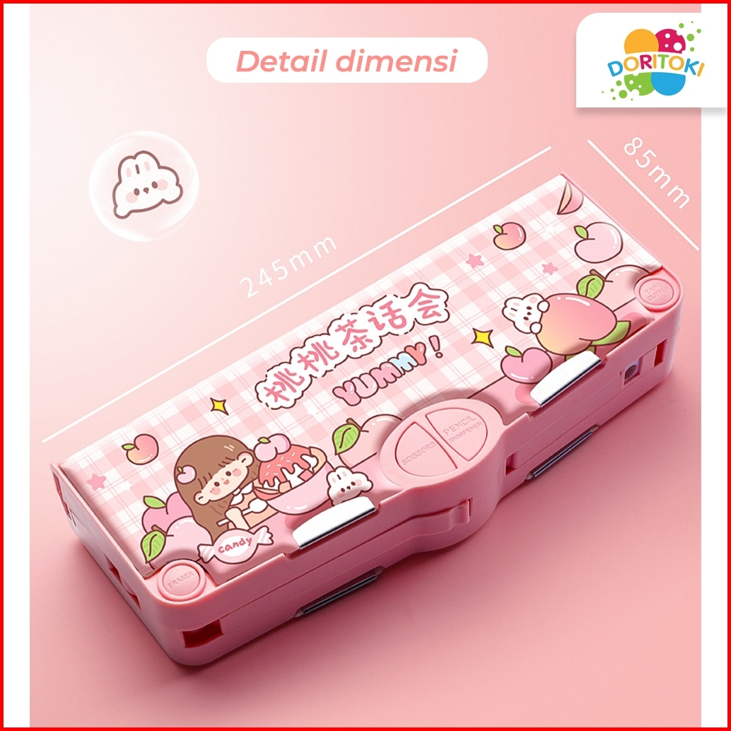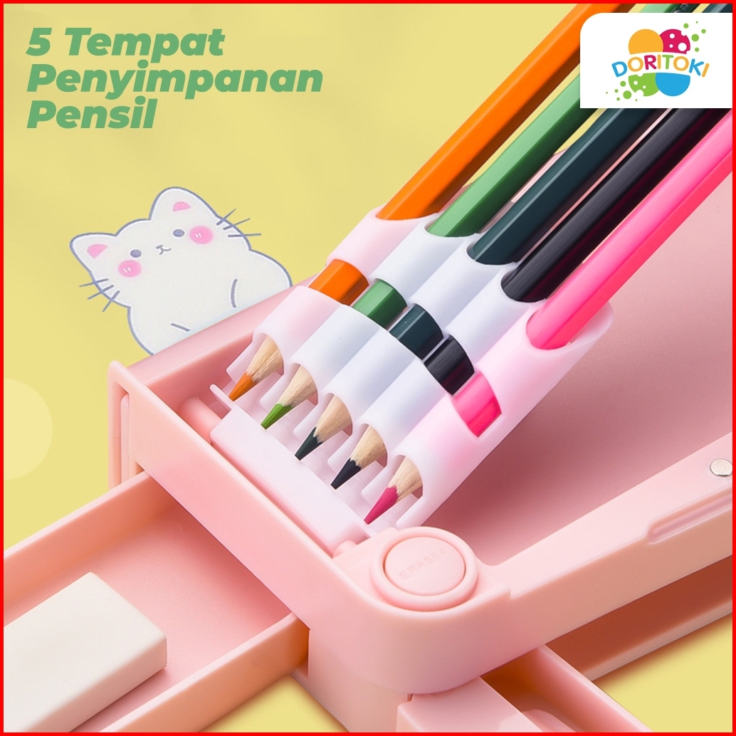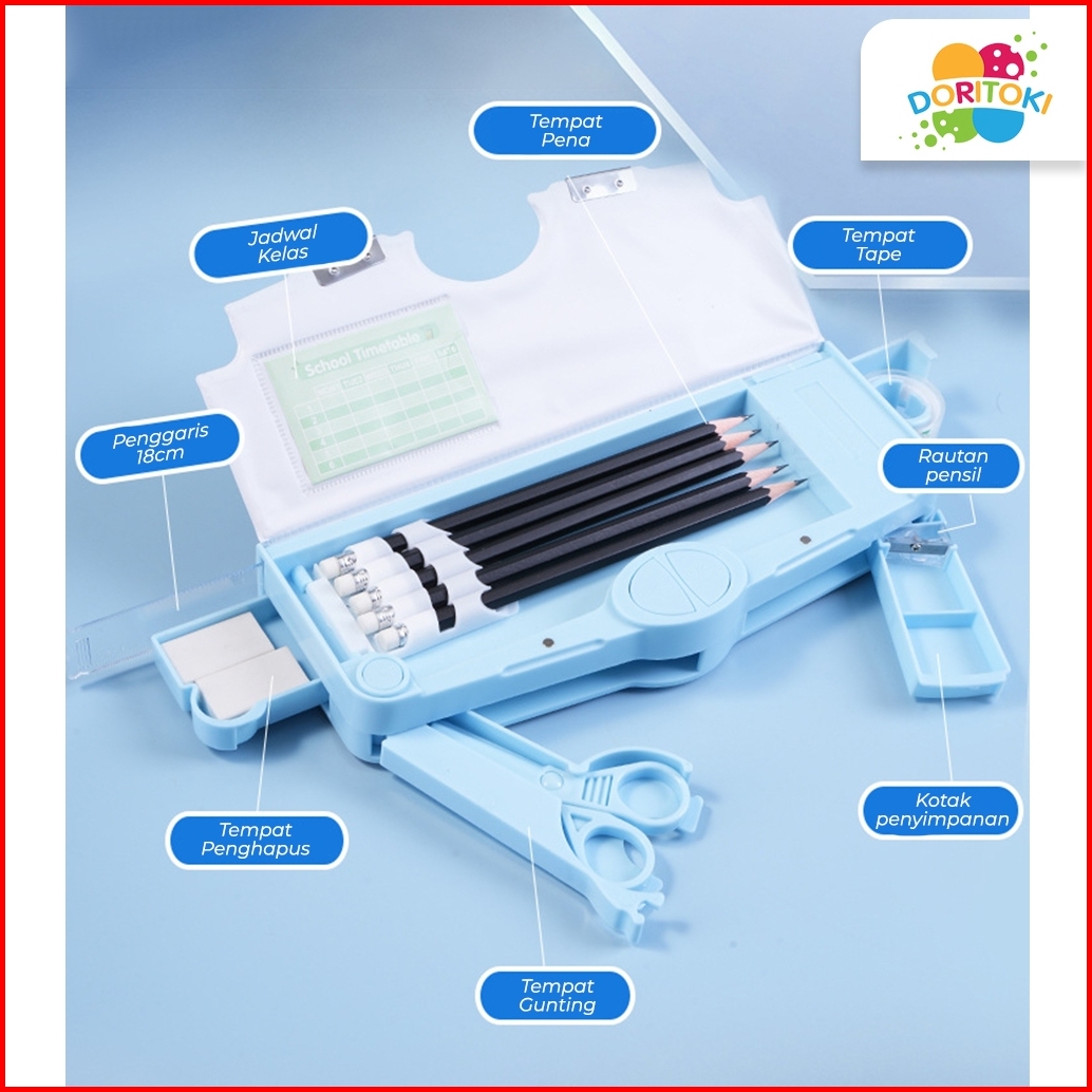 Doritoki Tempat Pensil Multifungsi Kotak Pensil Anak Lengkap Peruncing Gunting Isolasi Penghapus Penggaris Alat Tulis Se