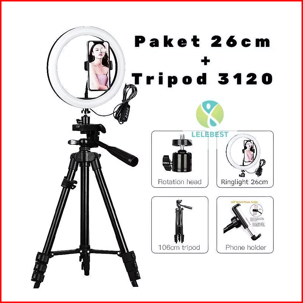 Ringlight 26cm Tripod 3120 Selfie Make Up Vlog Lampu Ring Light