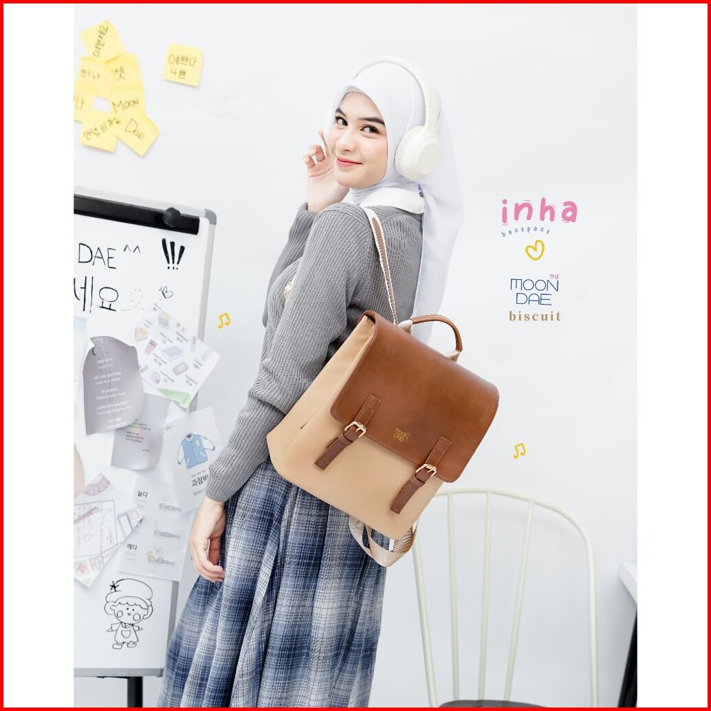 Moon Dae Inha Bag Tas Ransel Wanita Kulit Premium Backpack For Women Tas Korea