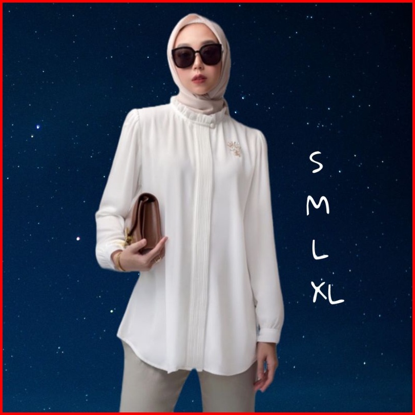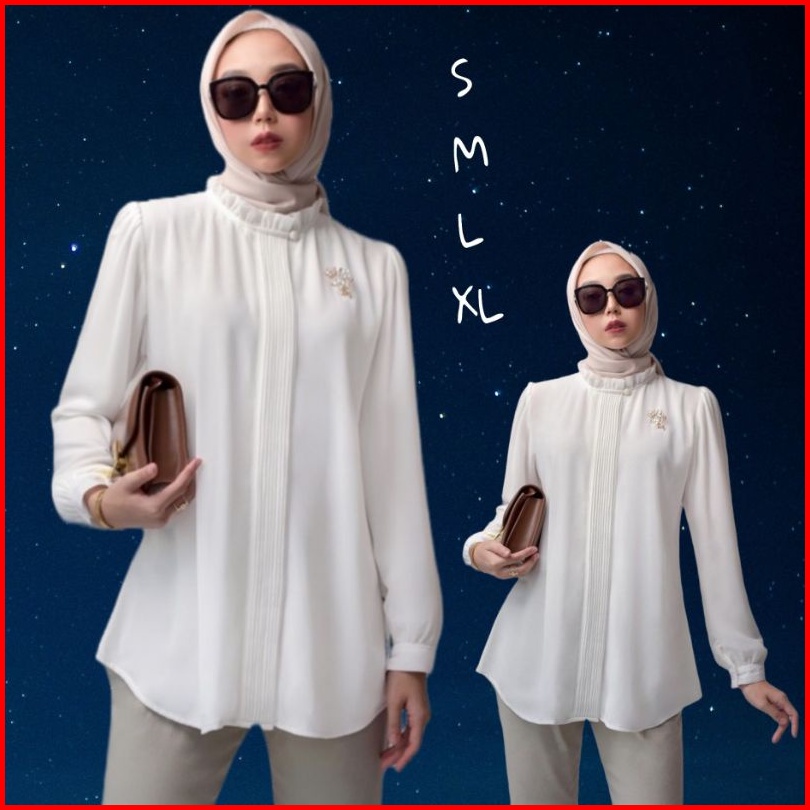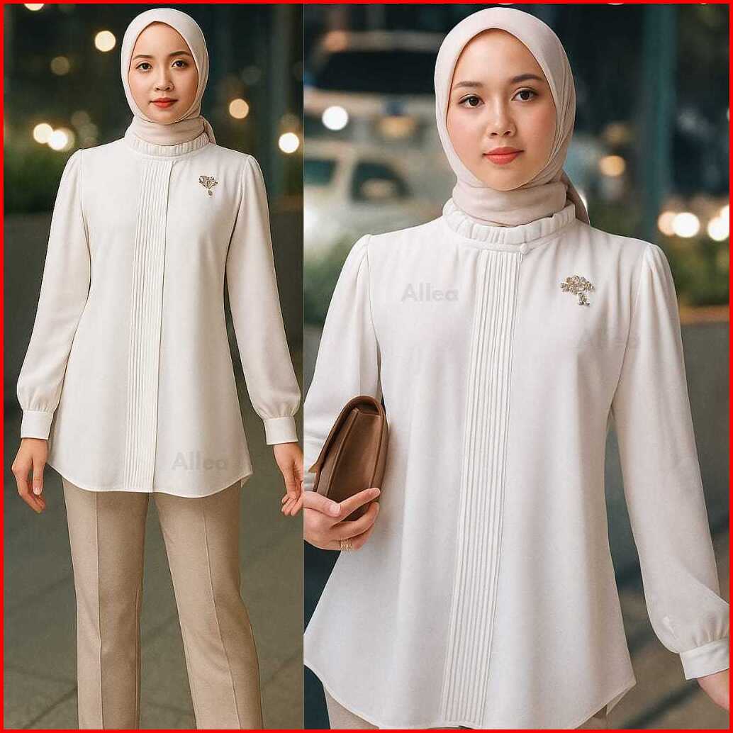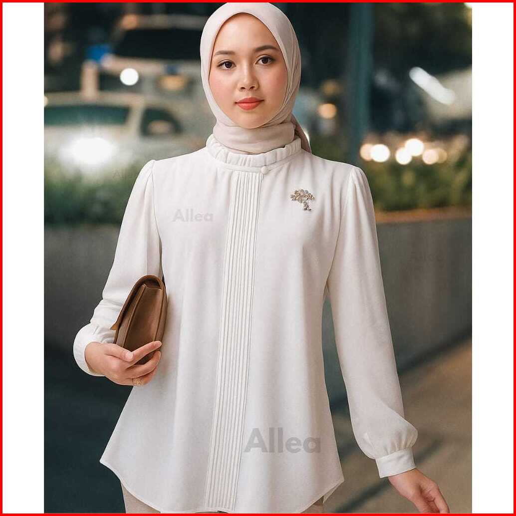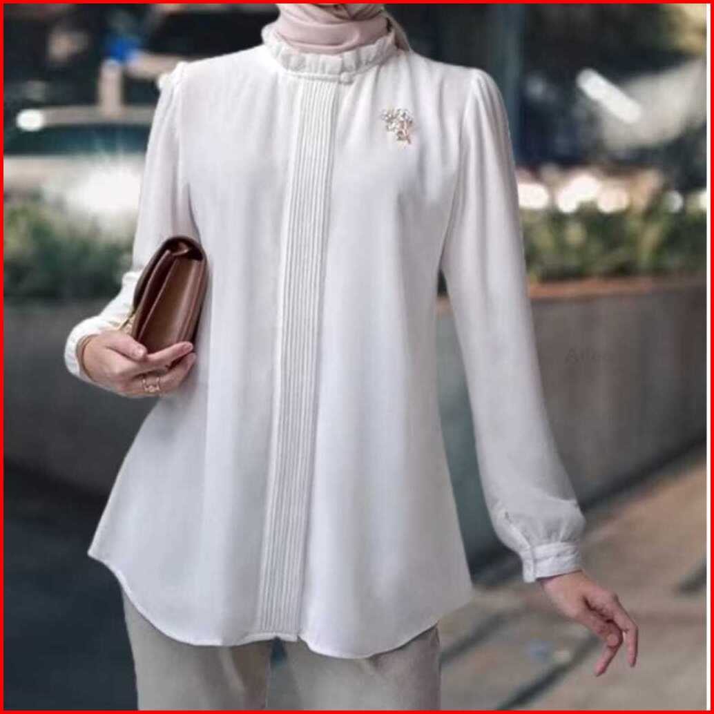 Atasan Kemeja Blouse Wanita Lengan Panjang Putih Polos Remaja Dewasa Kekinian Outfit Baju Model Korea Ootd Terbaru 2025