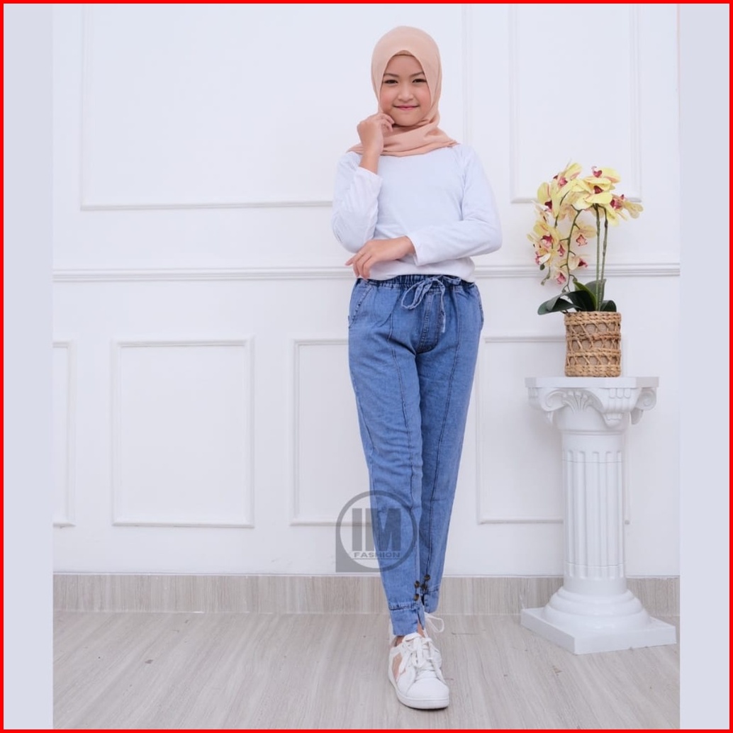 Celana Panjang Anak Perempuan 7-15 Tahun I Celana Jeans Anak Peremium Pinggang Karet I Celana Panjang Anak Perempuan