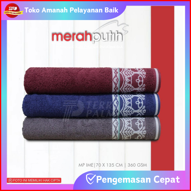 Handuk Mandi Merah Putih Dewasa Unisex Bahan Katun Premium Ukuran 70x135cm Handuk Perlengkapan Kamar Mandi Berkualitas L