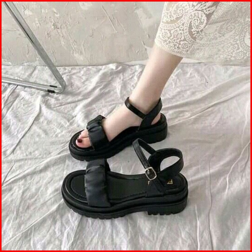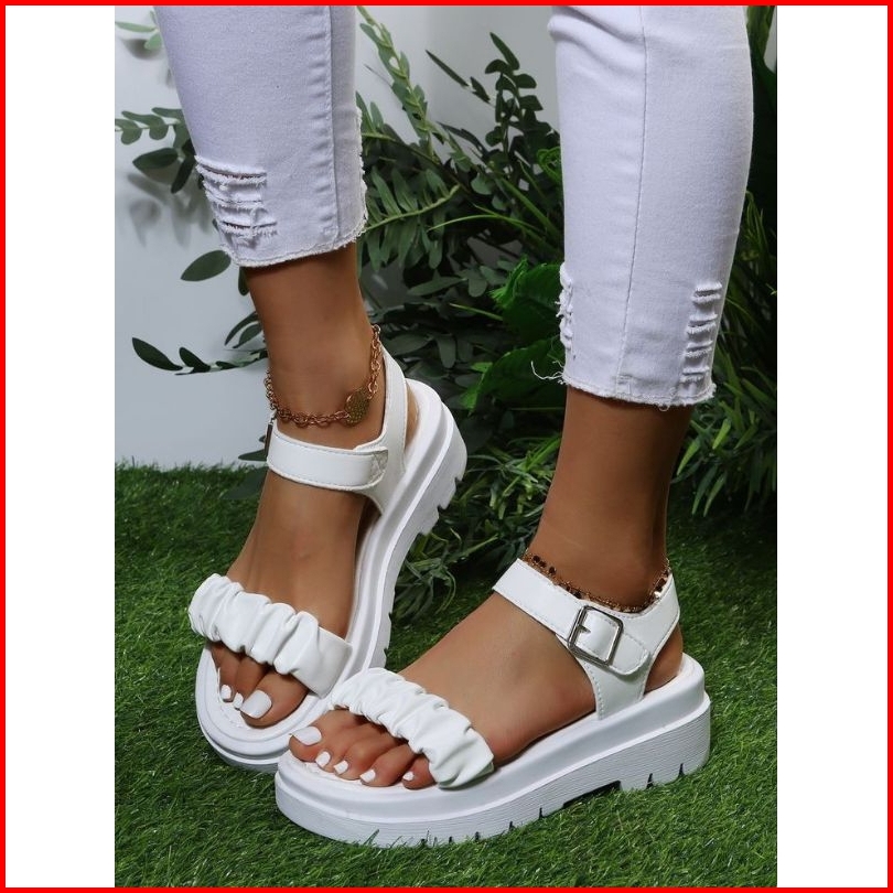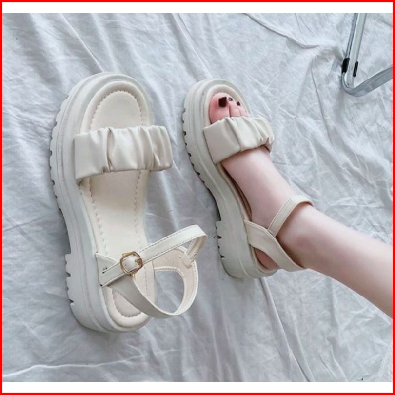 Rm Sandal Wedges Wanita Kerut Sintetis Premium